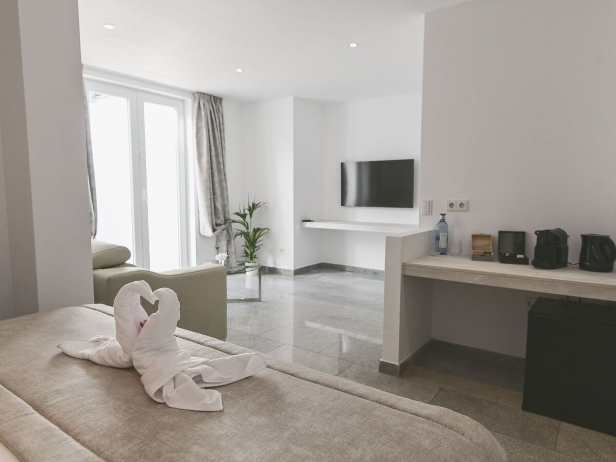 El Barco est une suite luxueuse de 27m2 avec un lit King Size, un salon, un mini-bar, un coffre-fort privé et une salle de bains attenante avec tous les équipements nécessaires tels que serviettes, gel douche, shampoing, sèche-cheveux, .....
