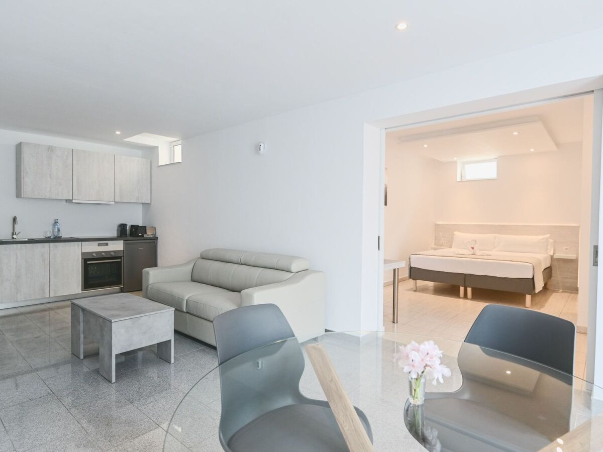 El Vinedo est un appartement avec une cuisine, une table à manger et un salon avec un canapé-lit.