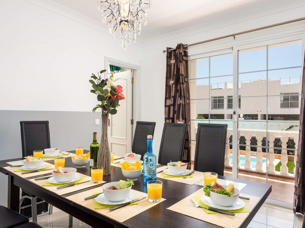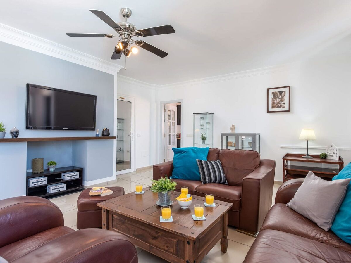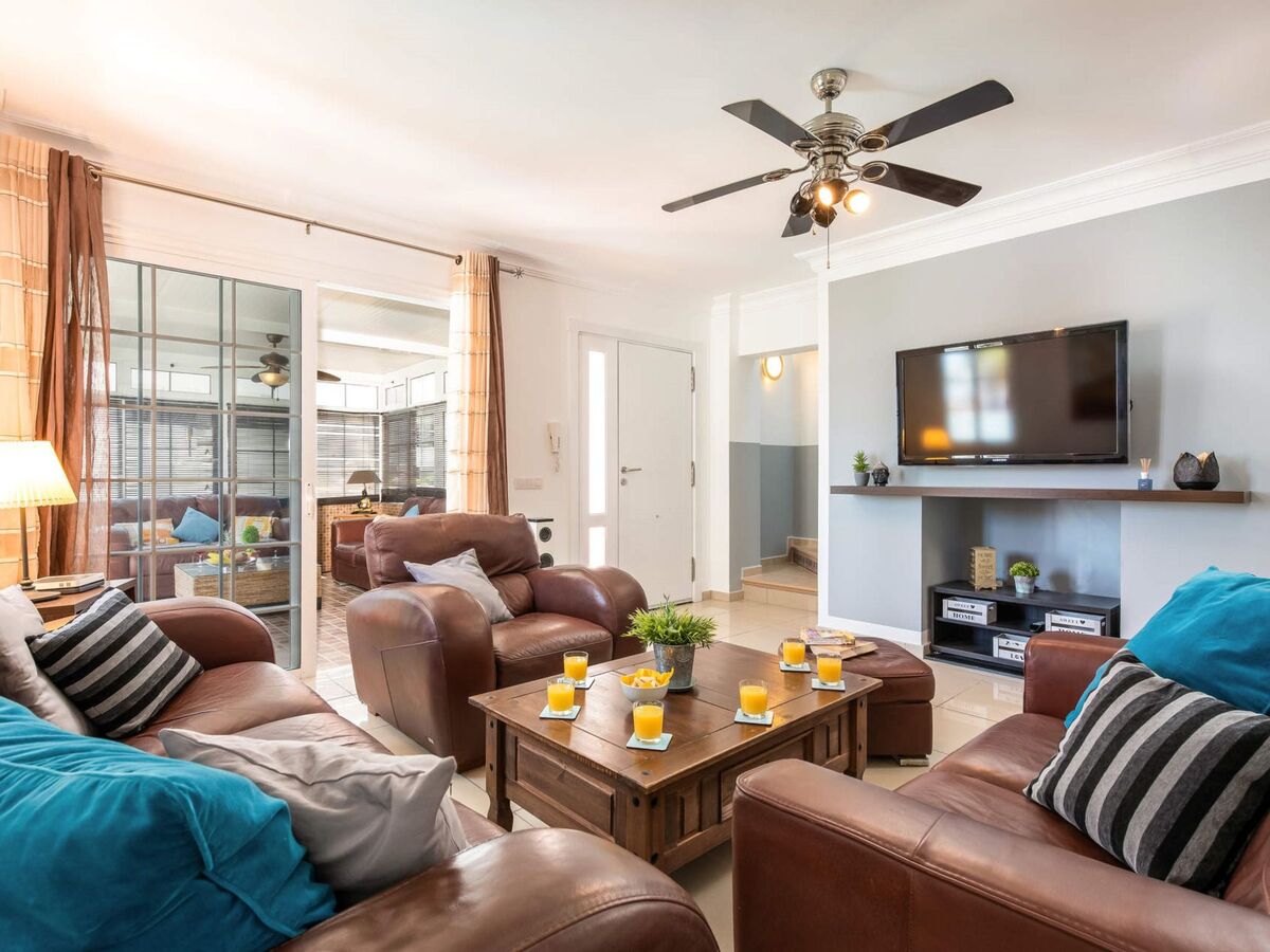 Au rez-de-chaussée se trouve un grand salon avec une télévision à écran plat (avec des chaînes internationales, y compris BBC et ITV), un jardin d'hiver avec accès à l'extérieur, une salle à manger avec accès à la terrasse avec vue sur la piscine, des toilettes, une chambre à coucher avec un lit queen-size et une salle de bain privée, et une cuisine séparée entièrement équipée.