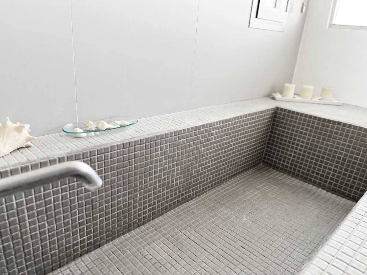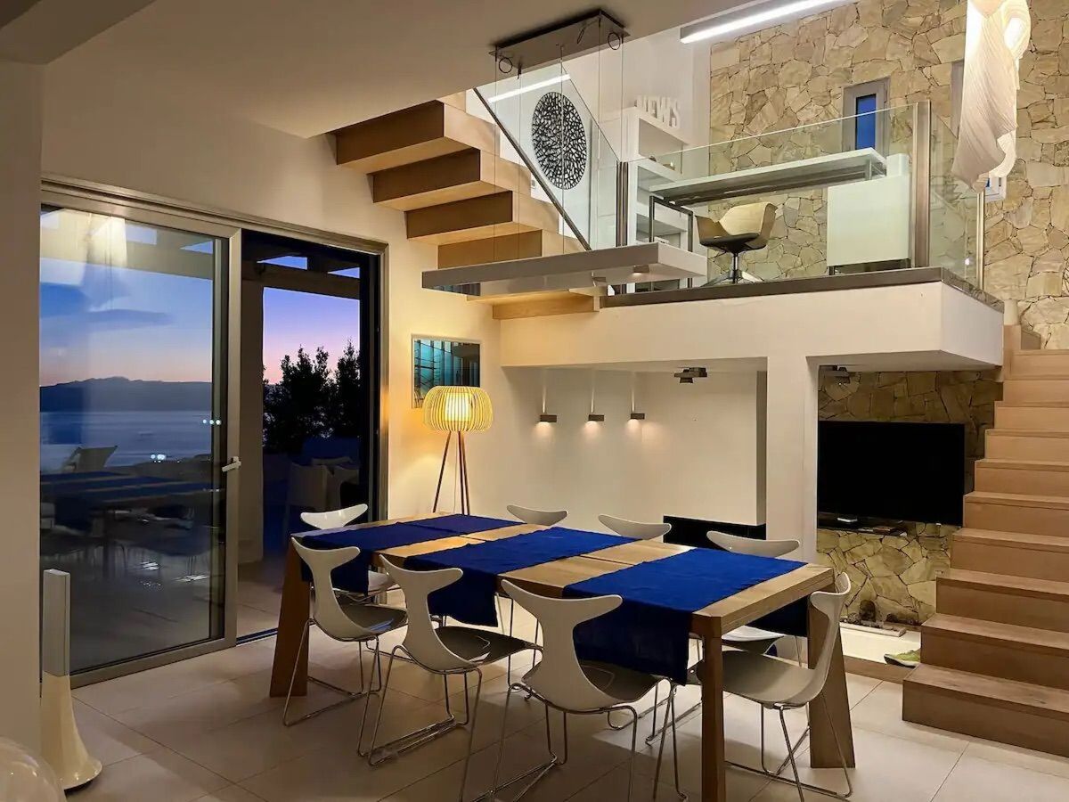 On the lower level there is also a sunbathing area and a patio with a Greek boat converted into a bench.