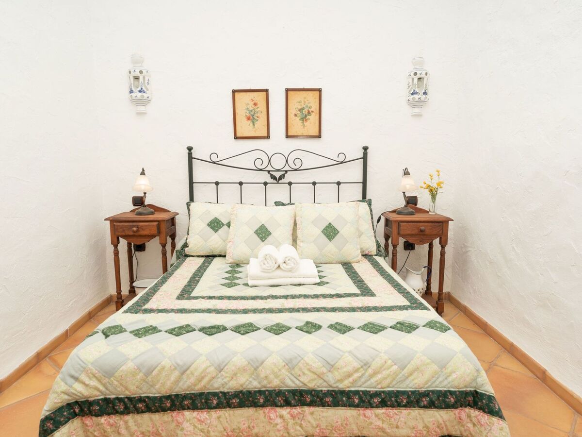 The bedroom is furnished with a double bed and a wardrobe.