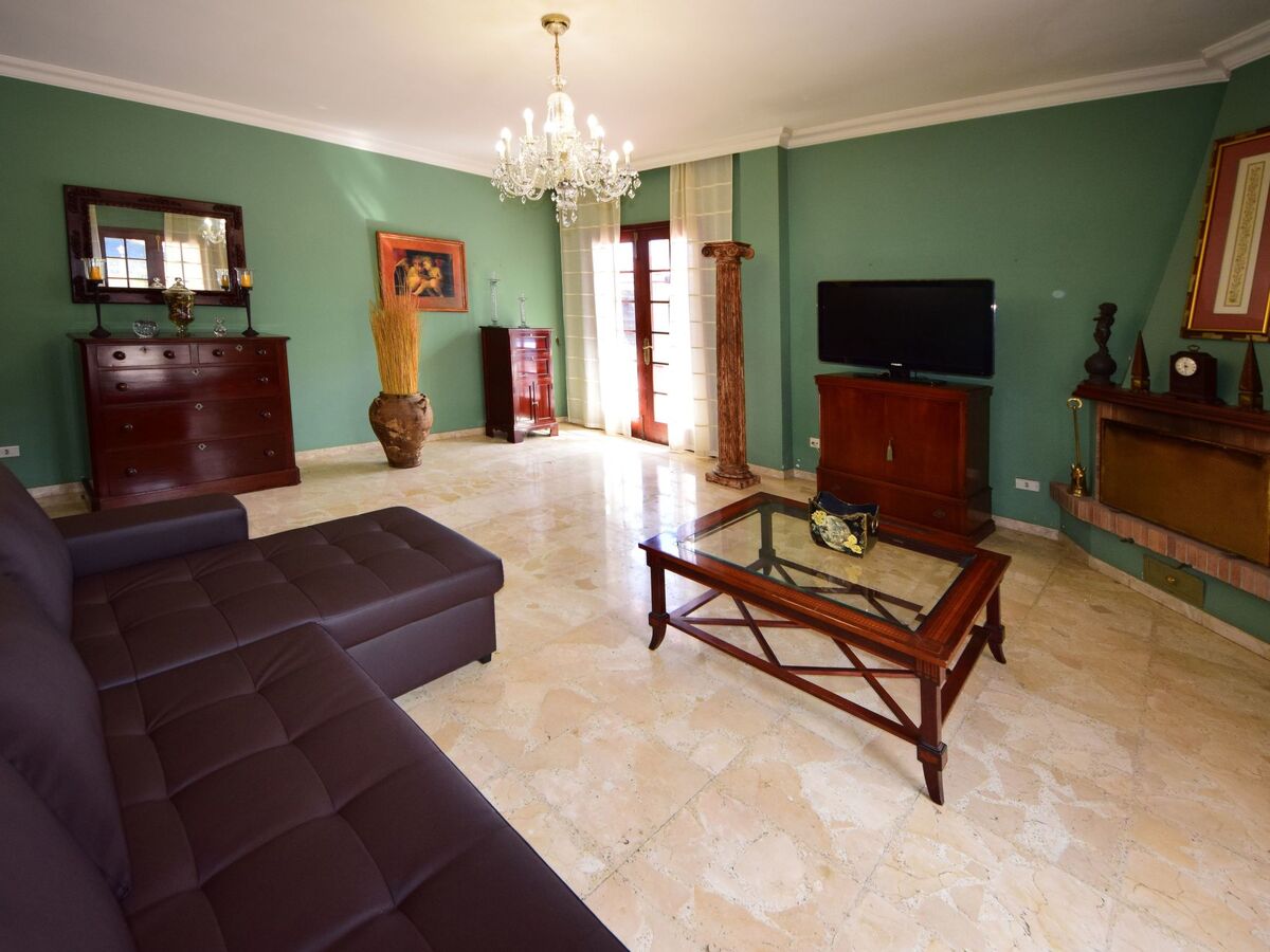 Behind it is the living room, equipped with satellite TV, which provides access to the pool area with barbecue and ping pong table.
