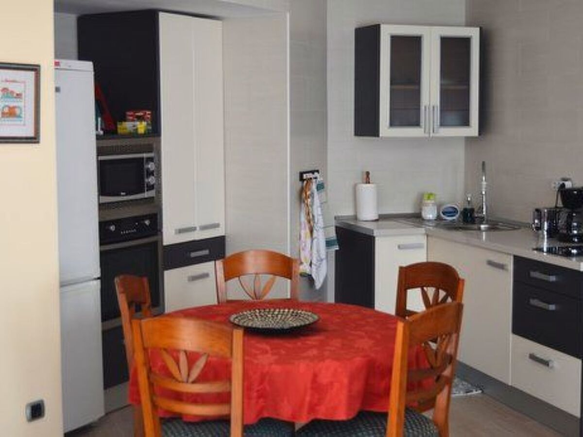 The third apartment located next to the pool has a bedroom with a double bed, a living room with sofa bed and single sofa plus a full equiped kitchen-dining room and a bathroom.