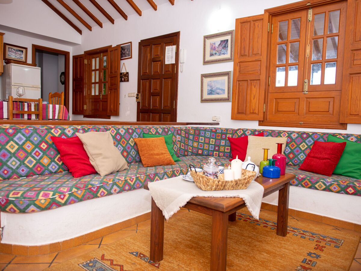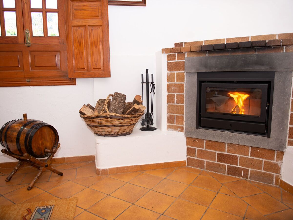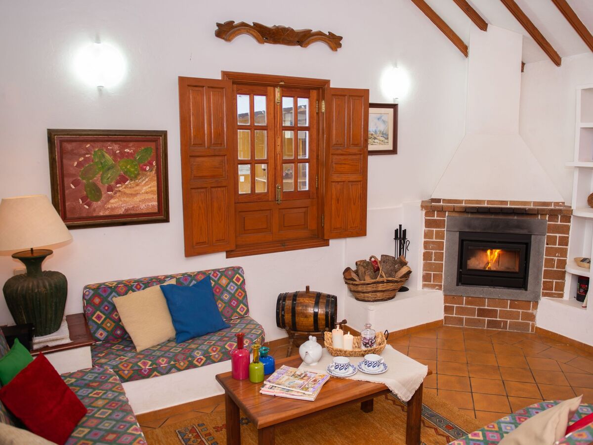 The large living room, where the open kitchen is integrated, has a cosy living room suite, a fireplace and a TV with satellite connection plus a DVD player.