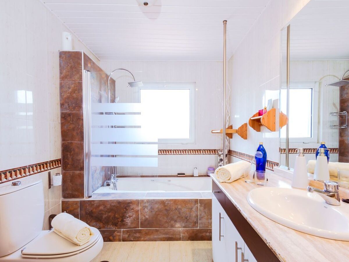 Il dispose de deux grandes salles de séjour, l'une pour lire et jouer à des jeux de société et l'autre pour regarder la télévision avec TV plasma 50 pouces, divertissement, DVD, Blu-ray, récepteur satellite dans différentes langues, cuisine avec tout ce dont vous avez besoin comme les épices, four, lave-vaisselle, bouilloire, grille pain, deux zones de travail, une chaude et une froide, table pour huit personnes et une salle à manger indépendante de lavage et de repassage avec accès séparé service.Au total, la maison dispose de cinq grandes chambres très lumineuses, toutes équipées de ventilateurs au plafond, de stores réglables et de téléviseurs plasma, d'une suite de chambres avec accès privé au jardin, séparée du reste de la maison.