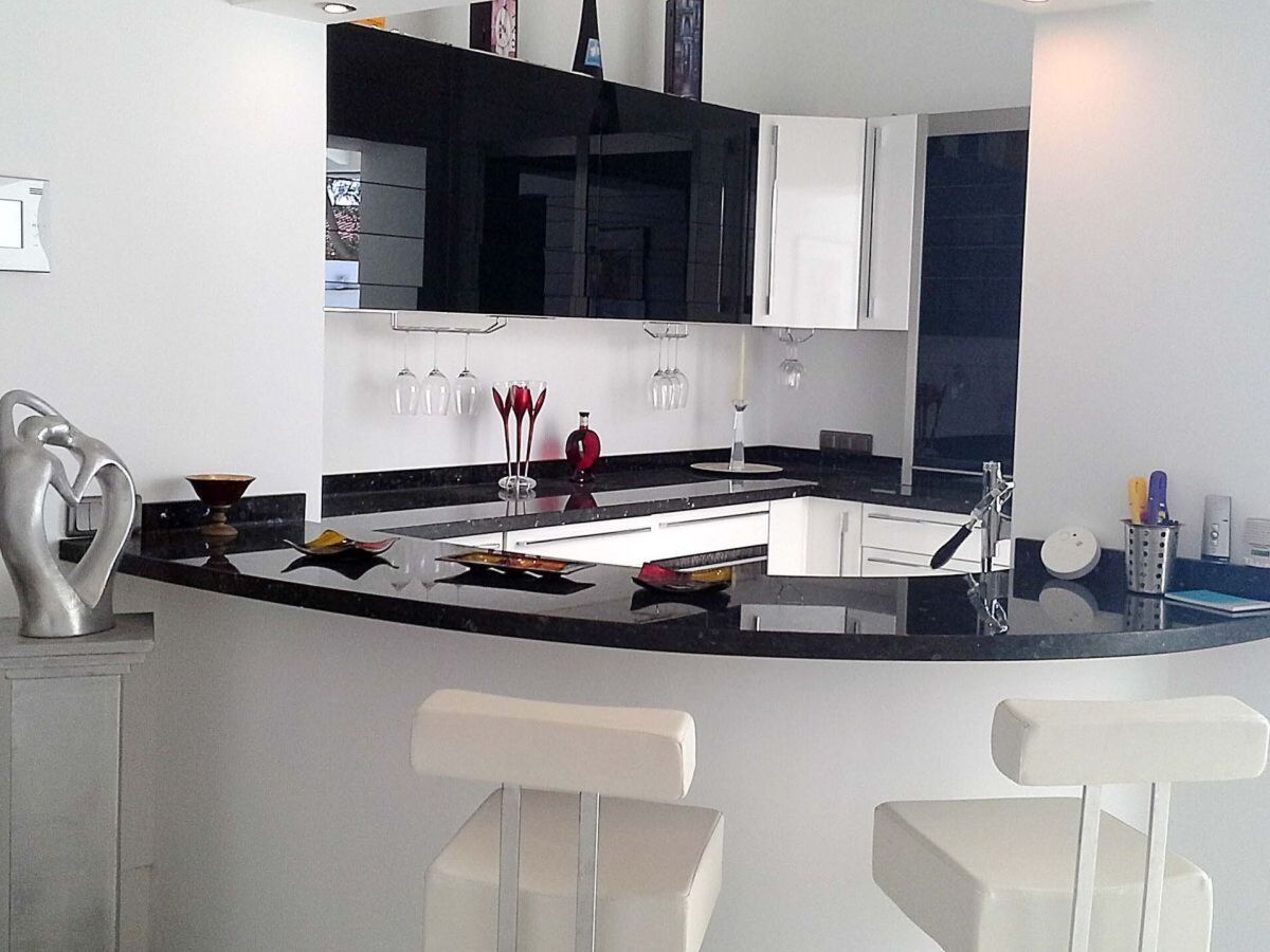 The 130 m² single-storey villa is divided into two bedrooms, a large living area with dining area and bar, a very extensively equipped kitchen, a large wellness bathroom and a smaller shower room.