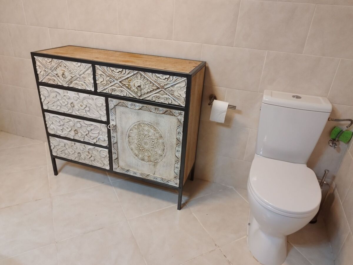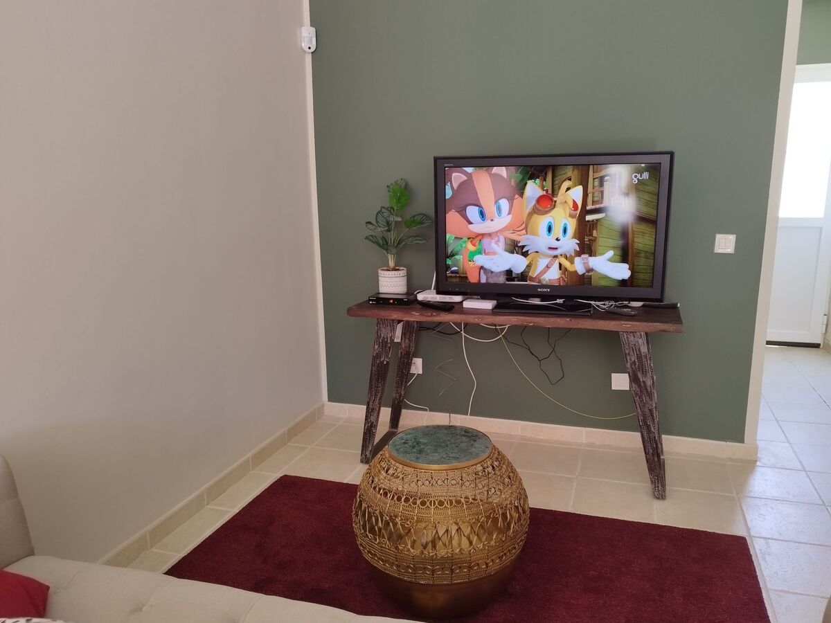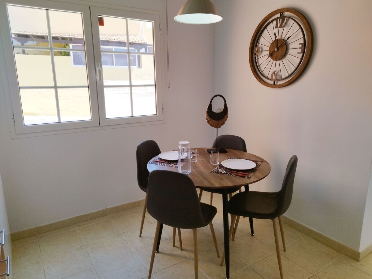 Salle à manger - Salon au rez-de-chaussée : 1 table + 4 chaises – Canapé et fauteuils – TV écran plat équipé d'une passerelle multimédia Androïd TV, d'un décodeur satellite et du câble, permettant de recevoir un très grand nombre de chaînes espagnoles et internationales – Box WIFI avec fibre optique – Enceinte radio Bluetooth - Accès direct à l'entrée de la propriété et au patio à l'arrière.