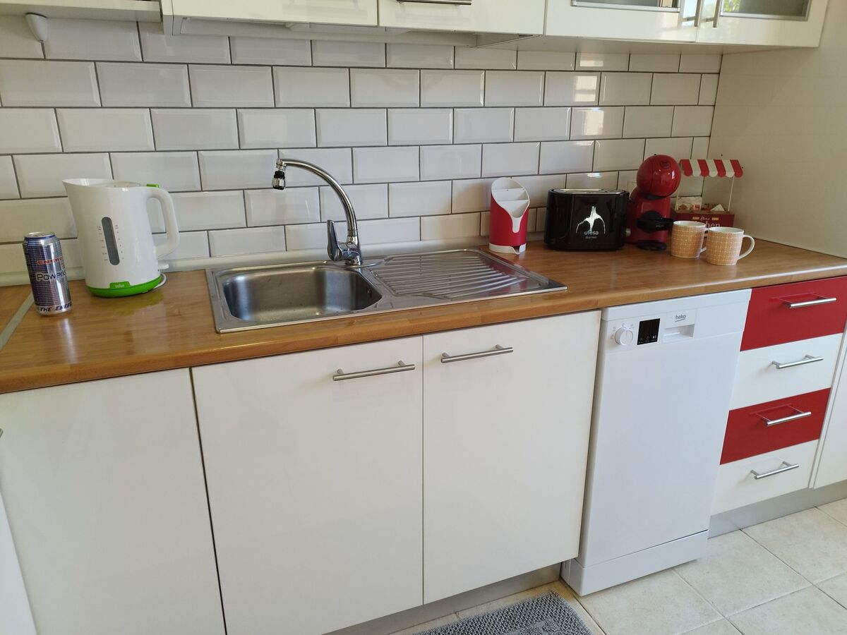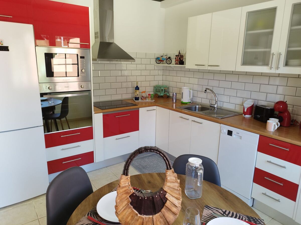 Cuisine toute équipée séparée : Réfrigérateur-congélateur – Cafetière – Bouilloire – Toaster – Plaque de cuisson 4 feux vitrocéramique – Four encastrable de grande capacité – Four à micro-ondes – Hotte aspirante de cuisine – Cafetière à capsules Dolce Gusto – Presse agrumes – Lave vaisselle 6 couverts - Evier – Vaisselle et ustensiles de cuisine.