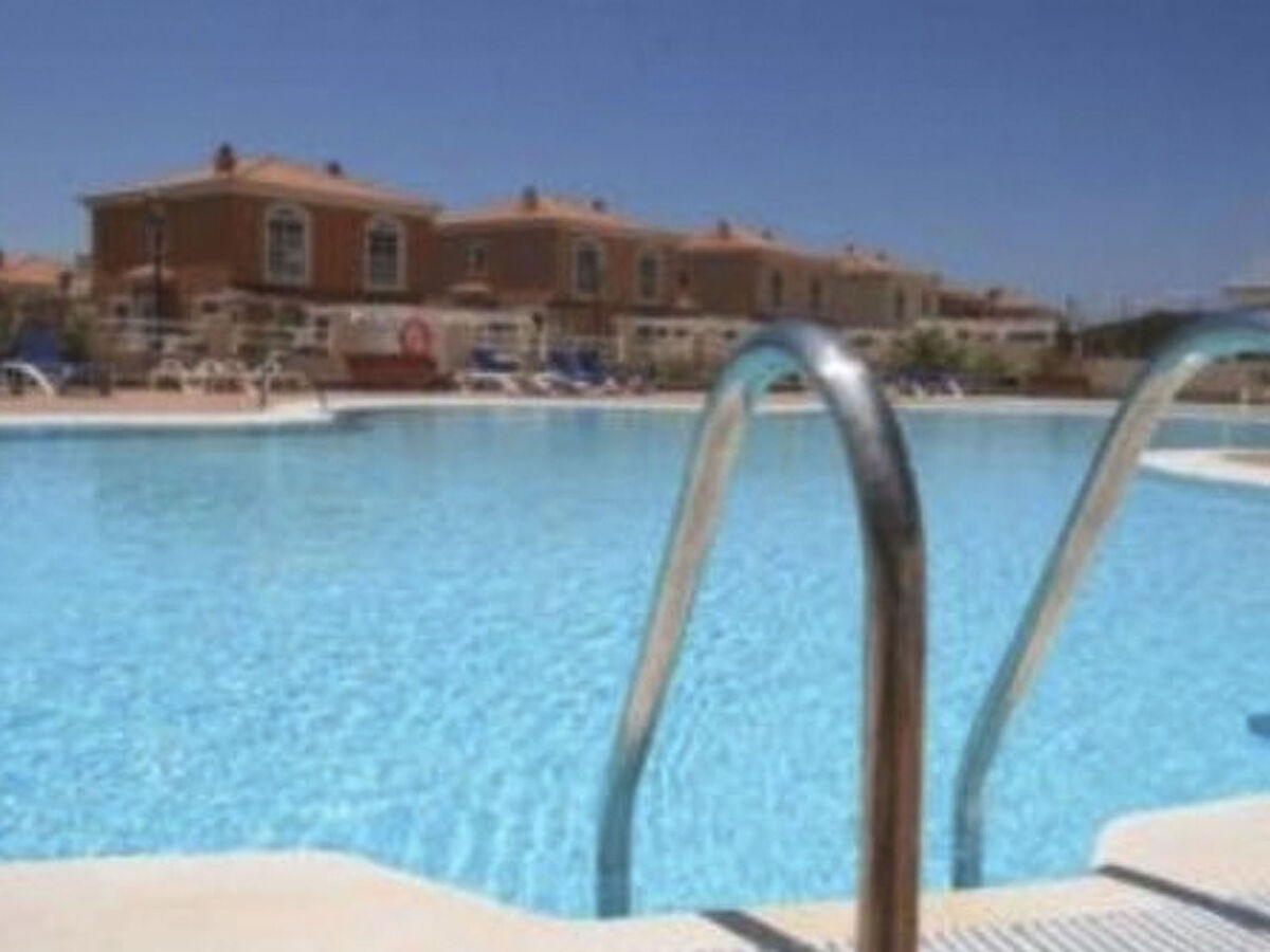 There is outdoor parking and a large communal swimming pool with sunbeds and parasols.