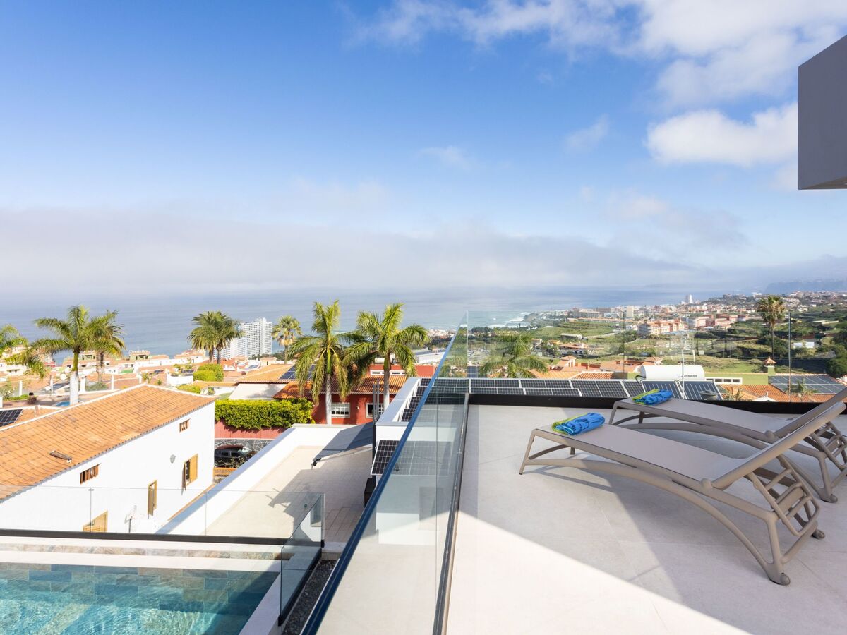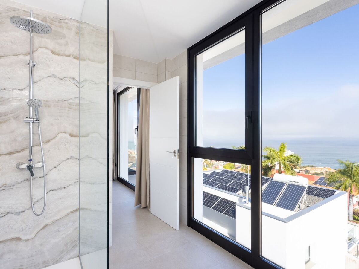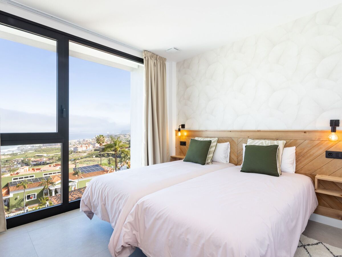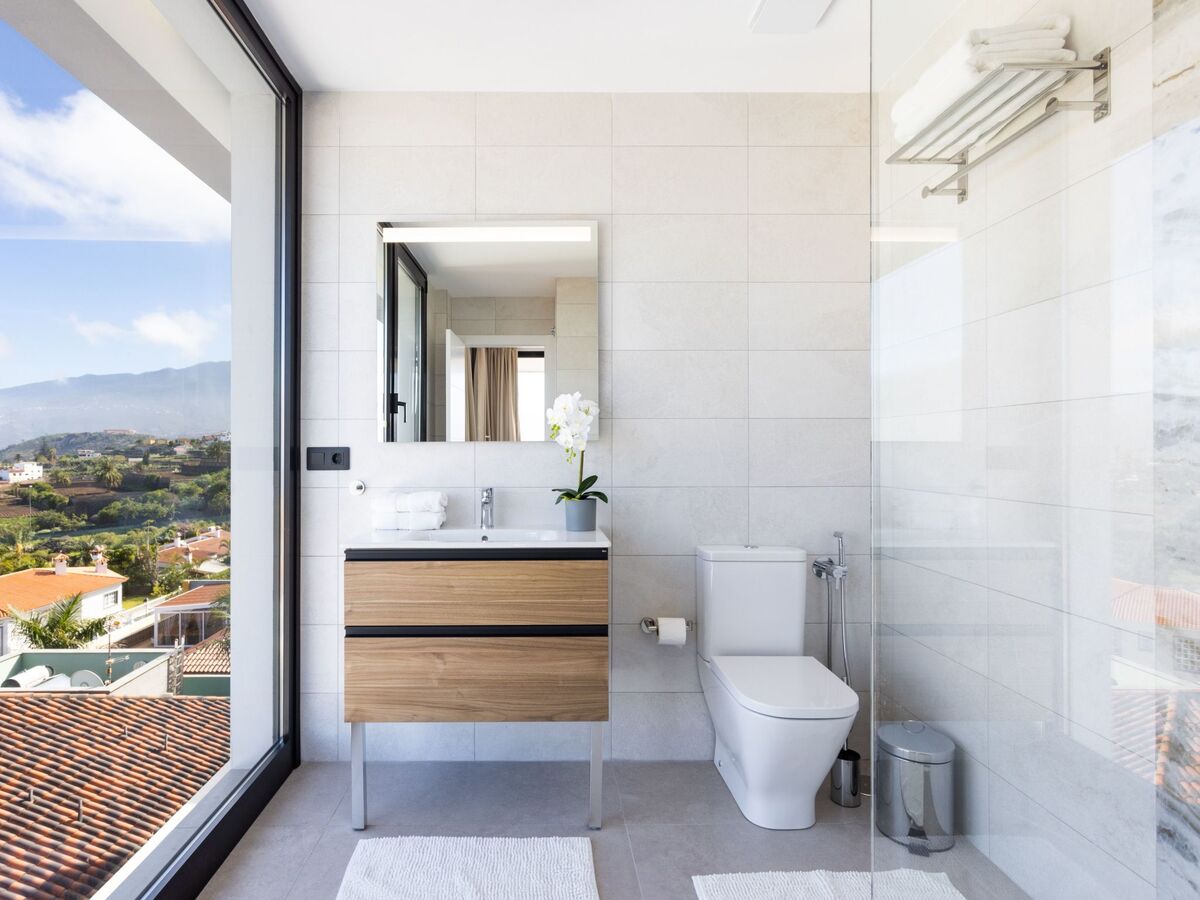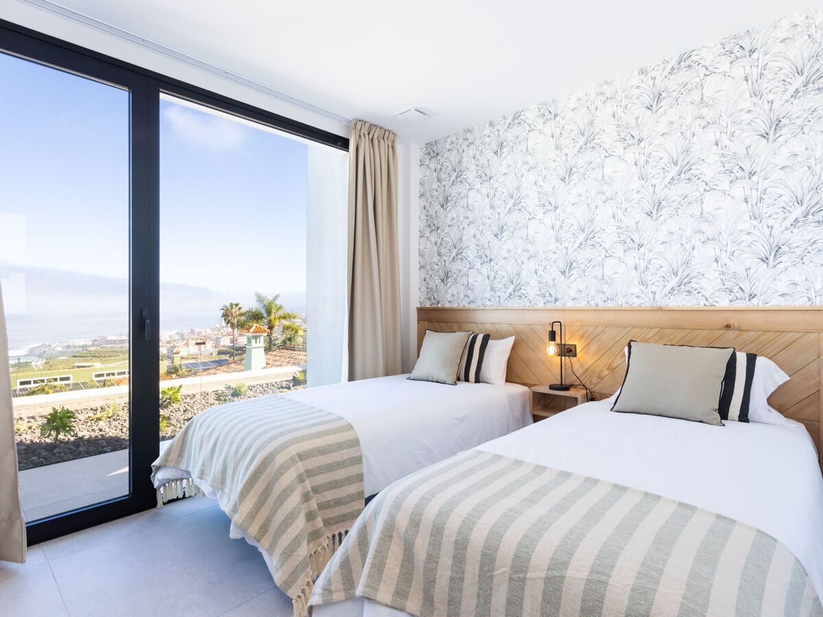 The upper floor has two bedrooms with single beds and two bathrooms, one of which has spectacular views of Puerto de la Cruz.