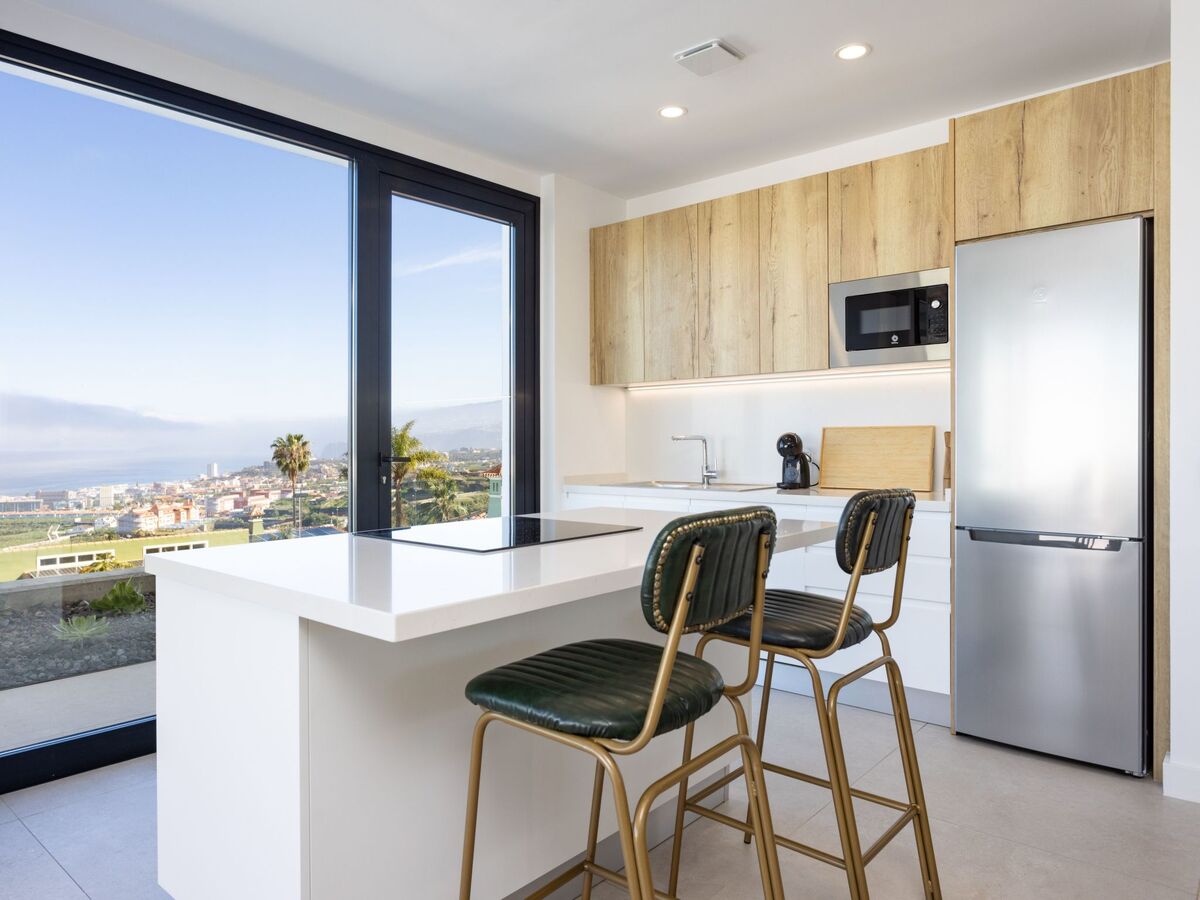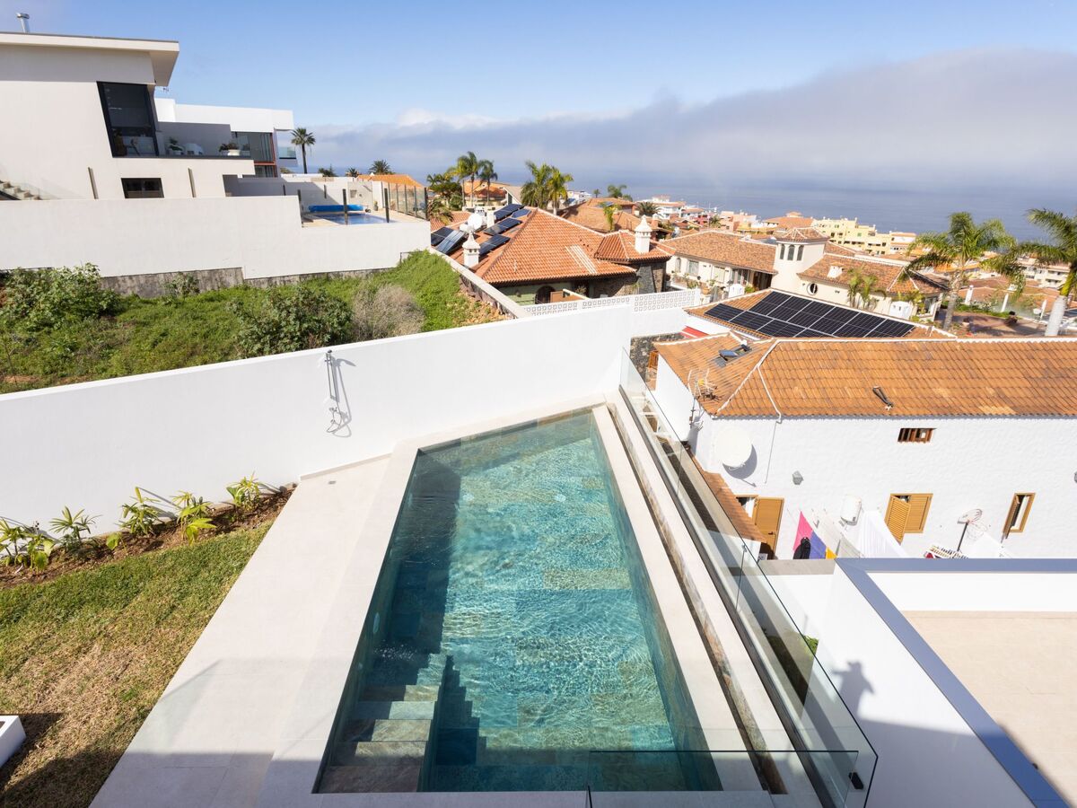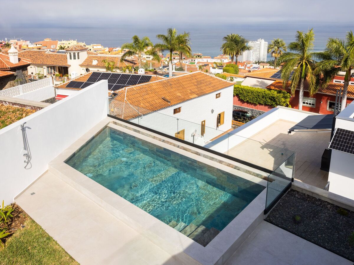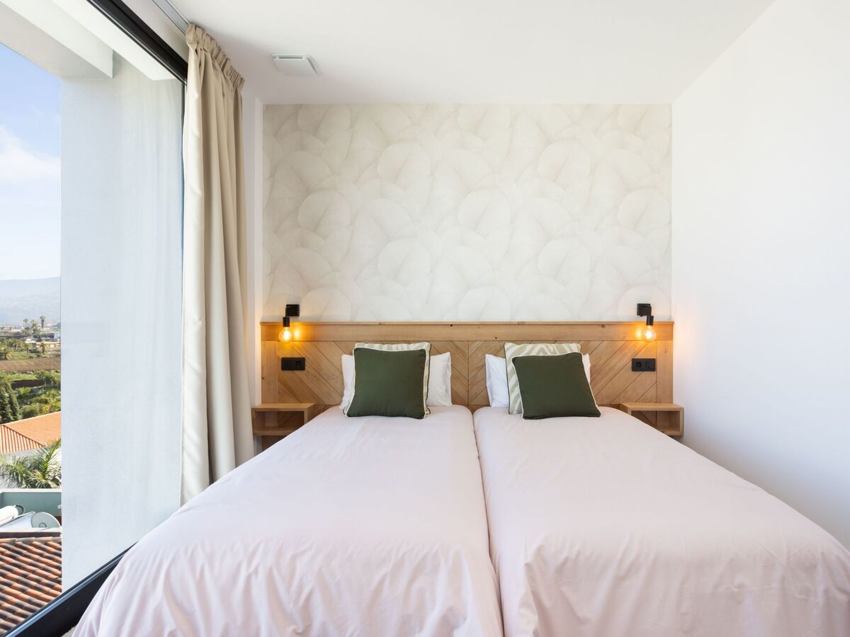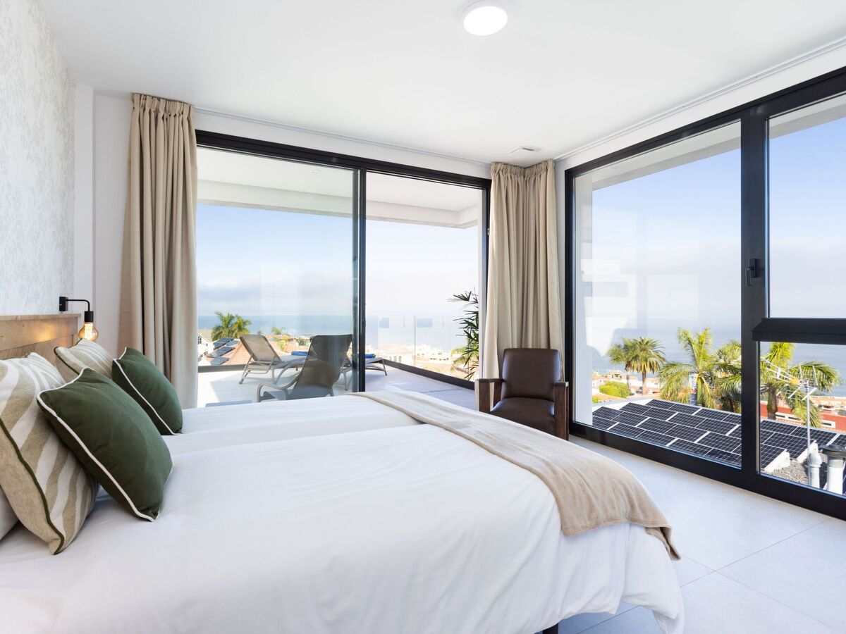 The upper floor has two bedrooms with single beds and two bathrooms, one of which has spectacular views of Puerto de la Cruz.