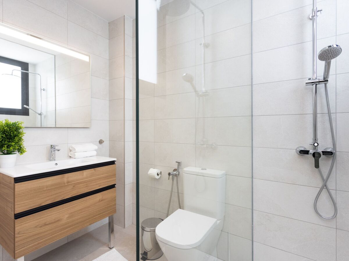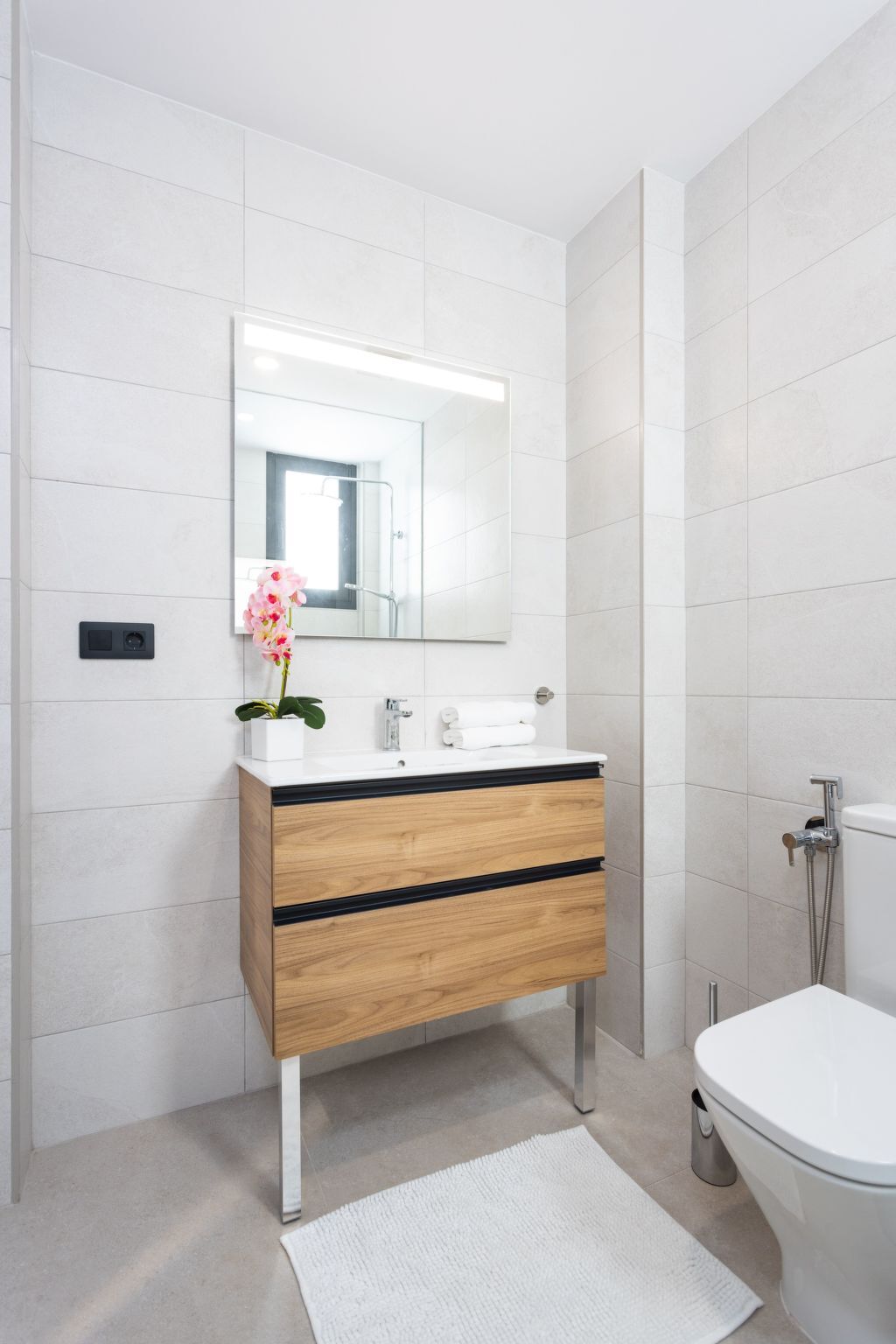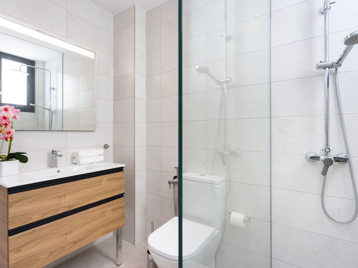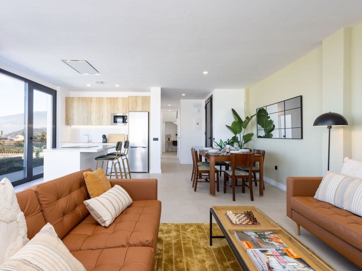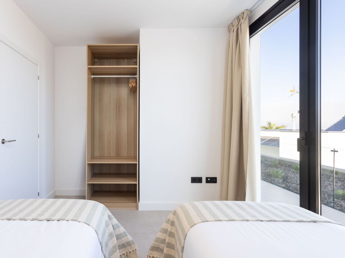 The upper floor has two bedrooms with single beds and two bathrooms, one of which has spectacular views of Puerto de la Cruz.