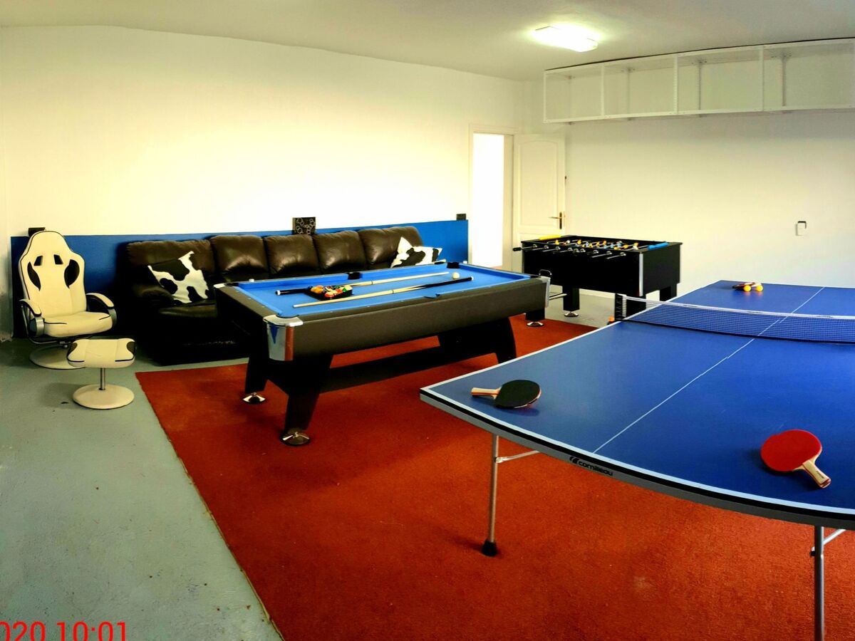 The outdoor hot tub in the conservatory, the 18 m2 private swimming pool, the 40 m2 gaming room with pool table, table football, table tennis, darts and much more, as well as a playground in the garden offer further opportunities for relaxation and entertainment.