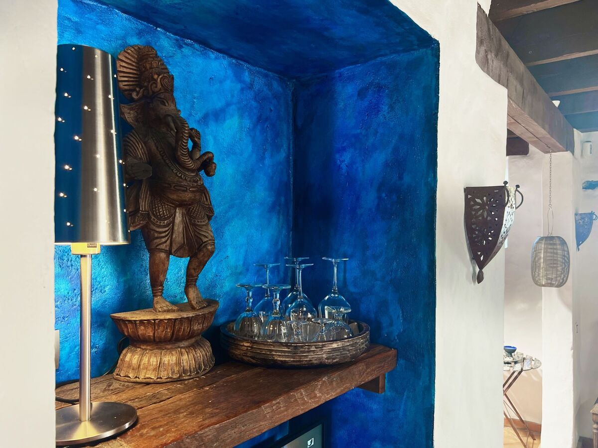 Terracotta, wooden floors, handmade tiles, wooden ceilings, Arabic metal lamps, wooden furniture, hand-painted pictures and many selected details have been lovingly and creatively put together and create a cozy, Mediterranean atmosphere to feel at home.