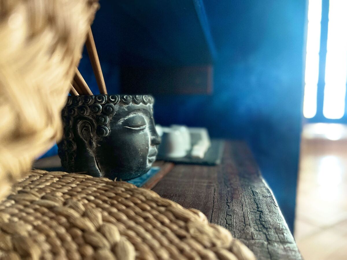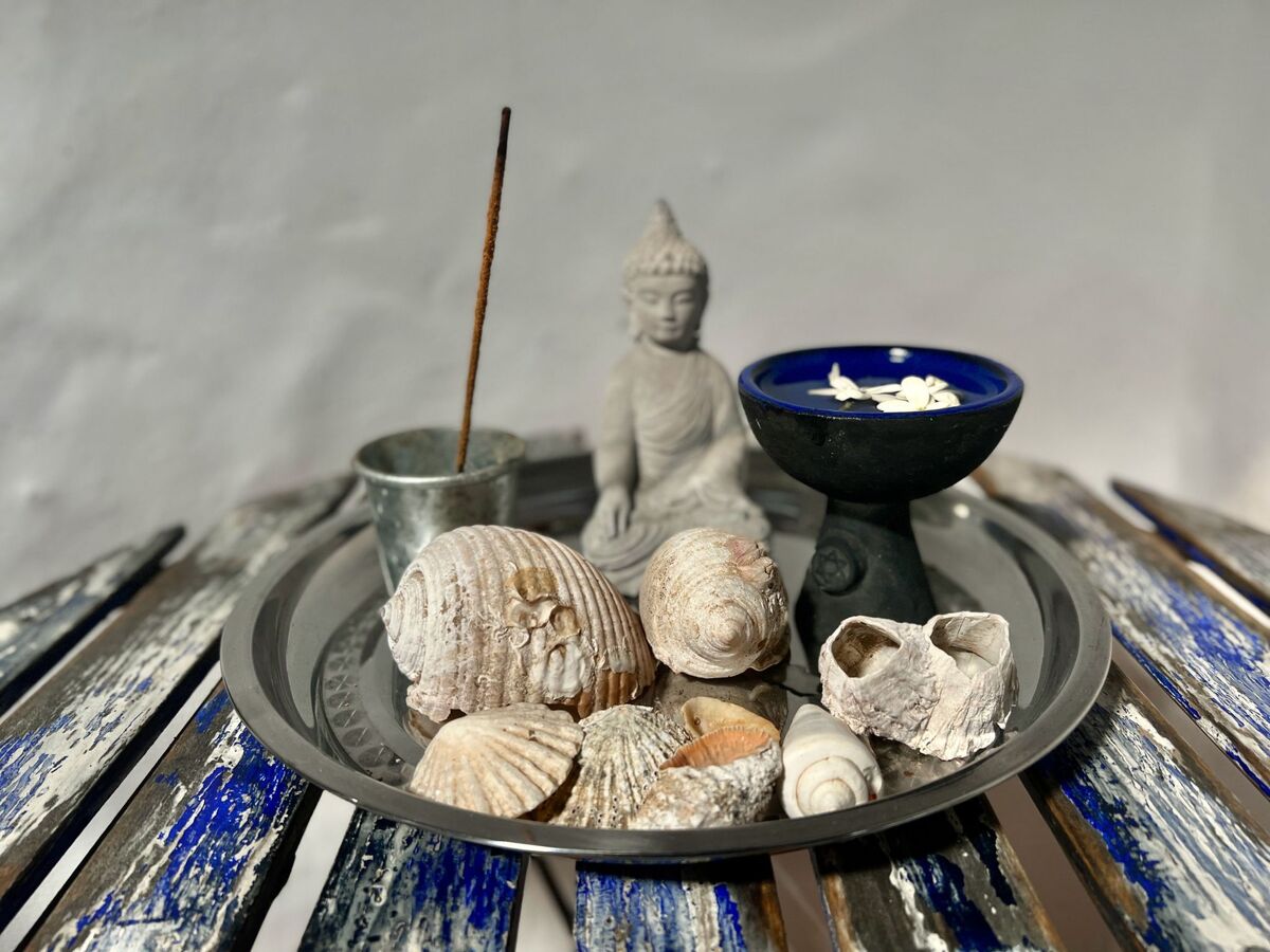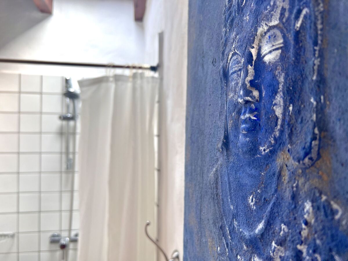 Handmade tiles, black volcanic stone pebbles, an Indian mirror are the details that make it a little oasis of well-being.