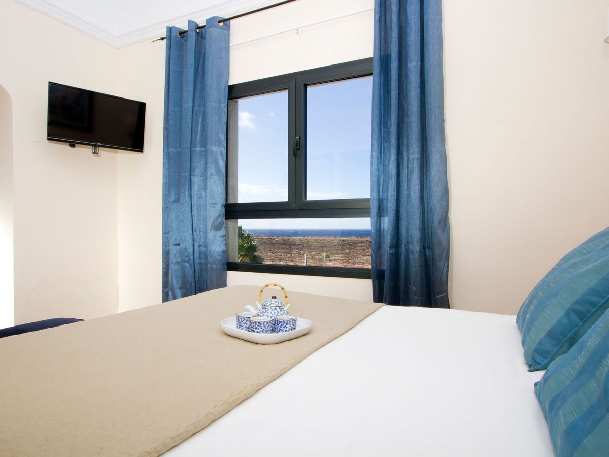 Principal bedroom with king size bed and bathroom, balcony with ocean views (Light tower Pechiguera and Fuerteventura and the island Lobos), Safe deposit box (extra charge).