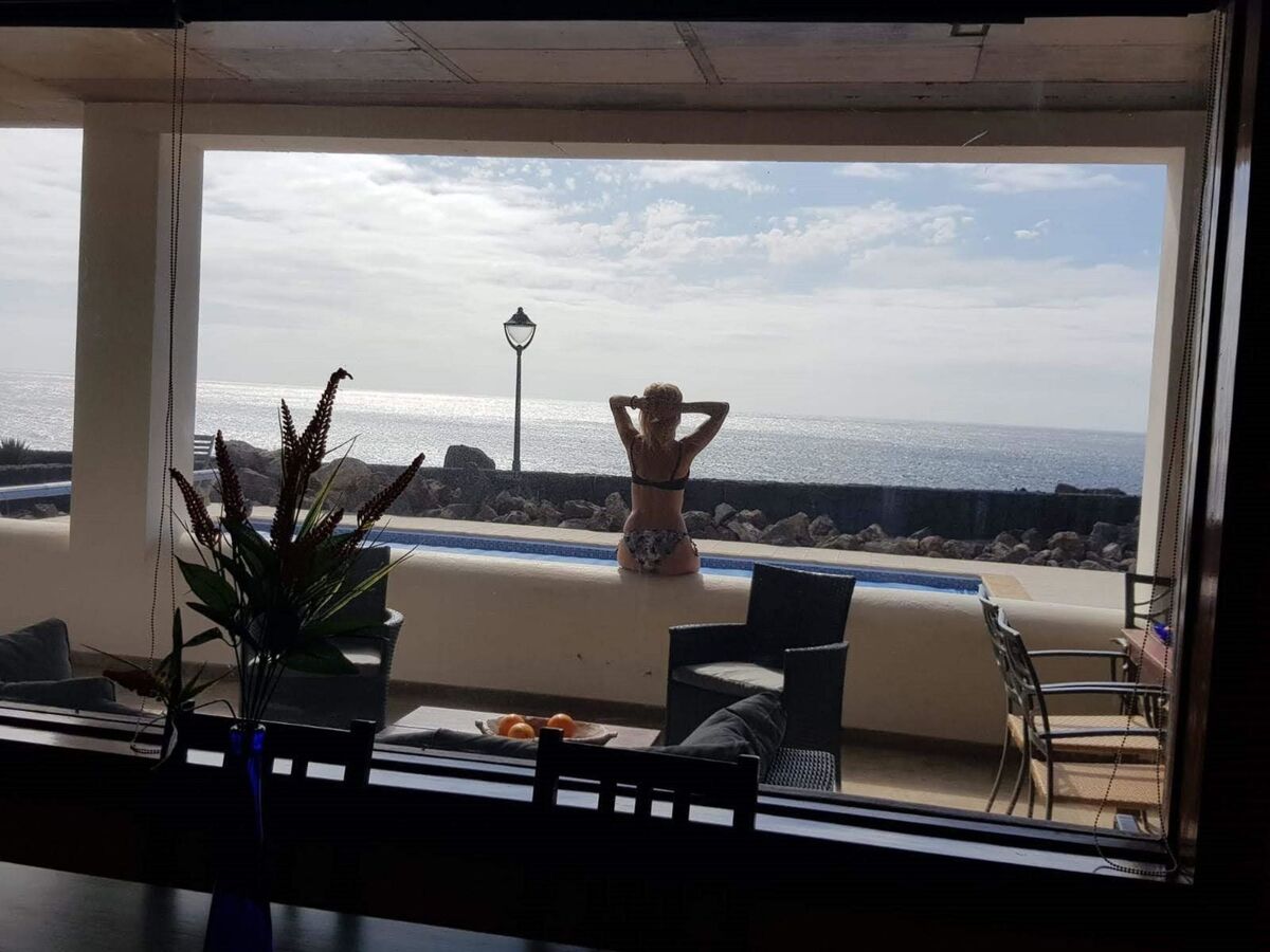 Villa with three bedrooms, two bathrooms and fully equipped kitchen on the seafront with magnificent sunsets, free WiFi and heated pool all year round.