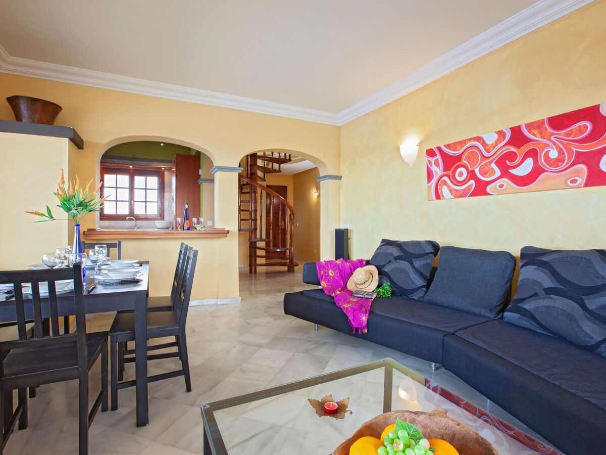 In the living room there is a 46 Smart TV with satellite channels, DVD, and a sound tower to connect your smartphone and listen to music while enjoying the best sunsets on the island.