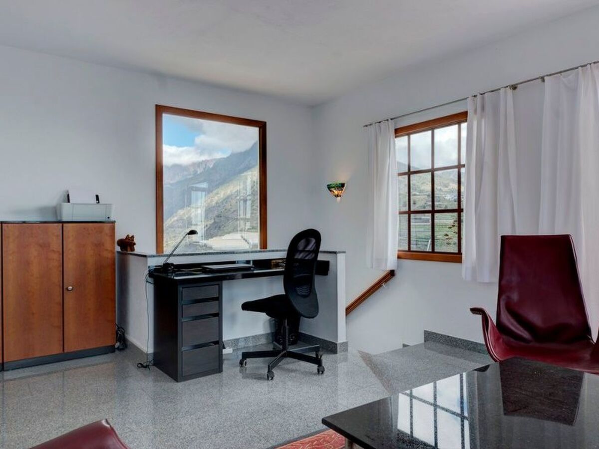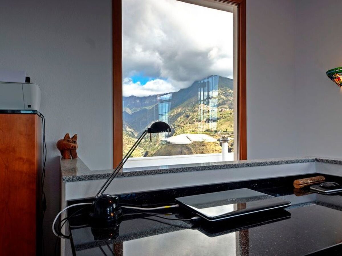 Large swing doors open onto a large terrace and offer panoramic views from the ocean via the Caldera to the beautiful mountains of La Palma.