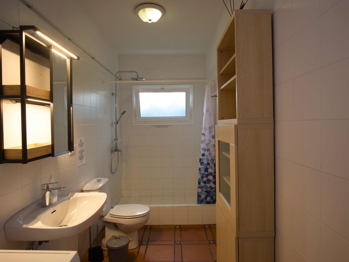 Dans l'une des deux maisons, la maison supérieure, se trouvent les deux chambres à coucher, chacune équipée d'un lit double (deux matelas de 0,90 m x 2,00 m), ainsi que la salle de bain spacieuse et moderne avec douche, sèche-cheveux, lavabo, machine à laver et WC.