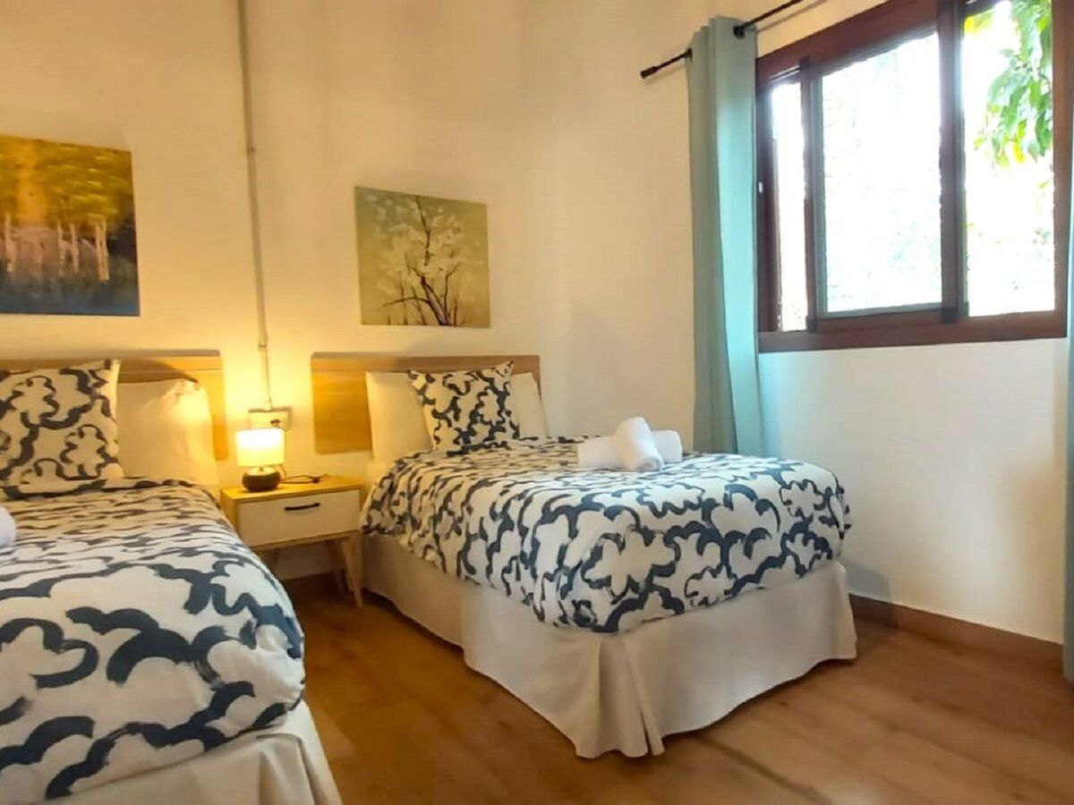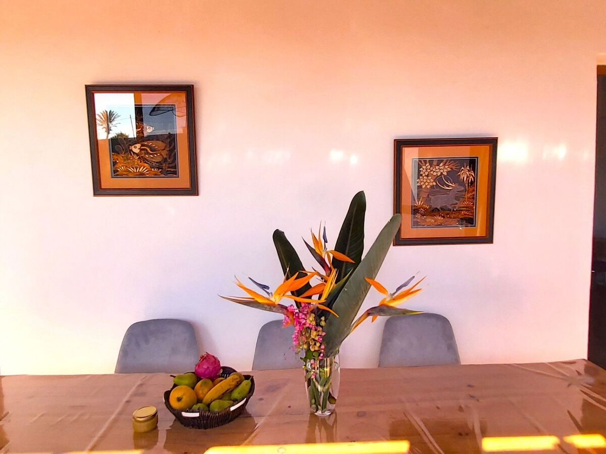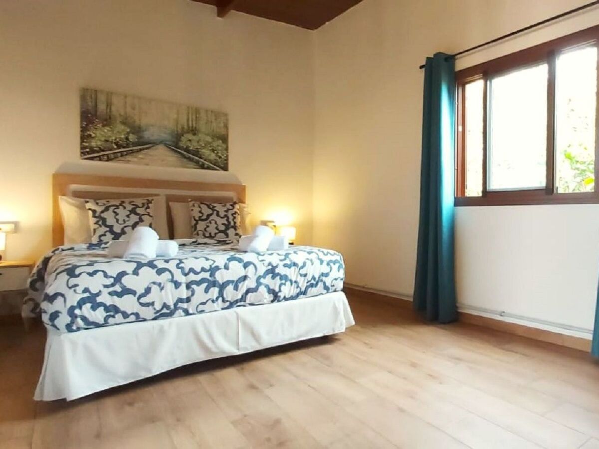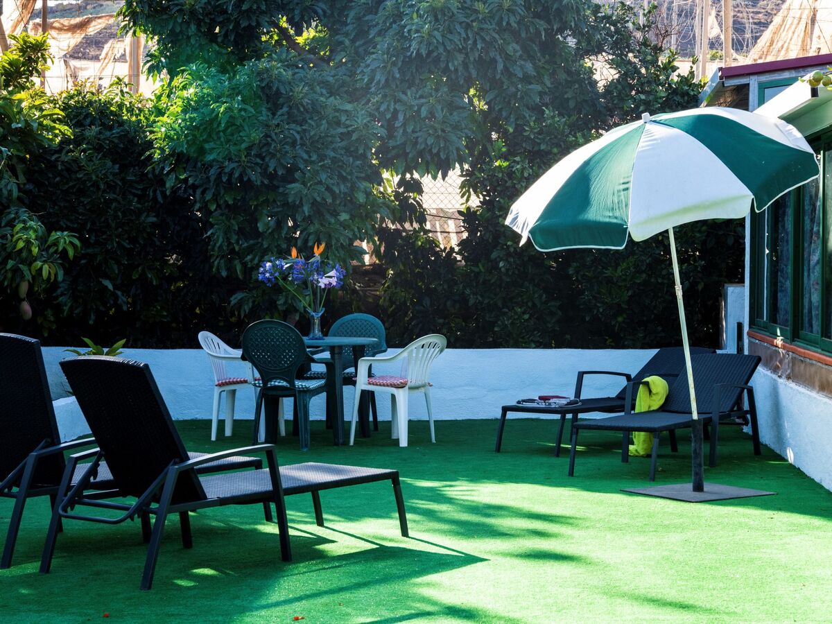 In the outdoor area of the finca there is a large chill-out area with sun loungers, parasols, tables, chairs, charcoal barbecue, outdoor shower and swings for our younger guests.