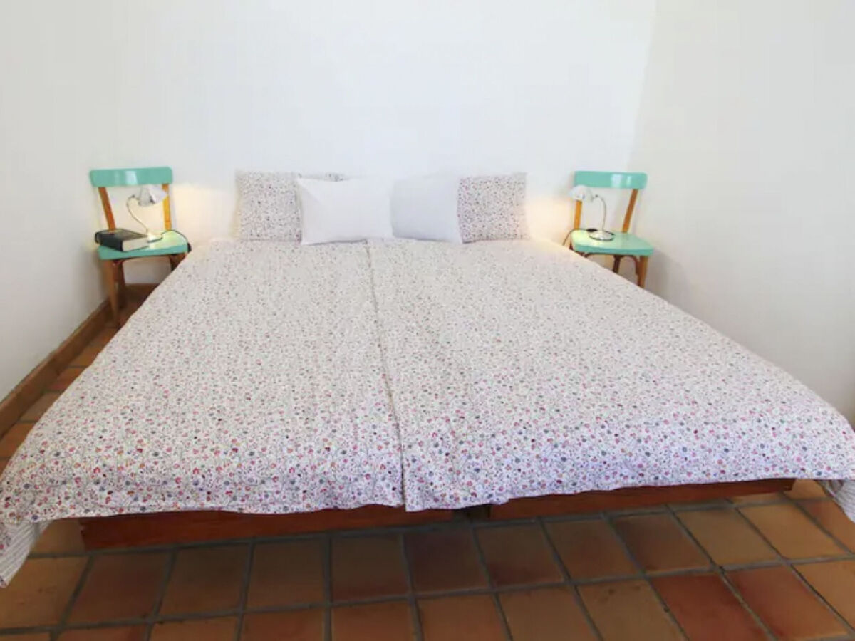 There are two single beds in the bedroom which, when pushed together, make a large double bed.