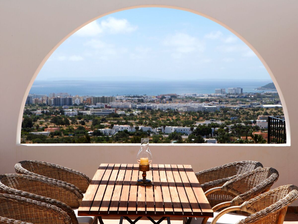 Ideally located, this residence offers a unique view of the old town of Ibiza (Dalt Vila), Playa den Bossa, the sparkling sea with Formentera in the background and Sa Caleta.