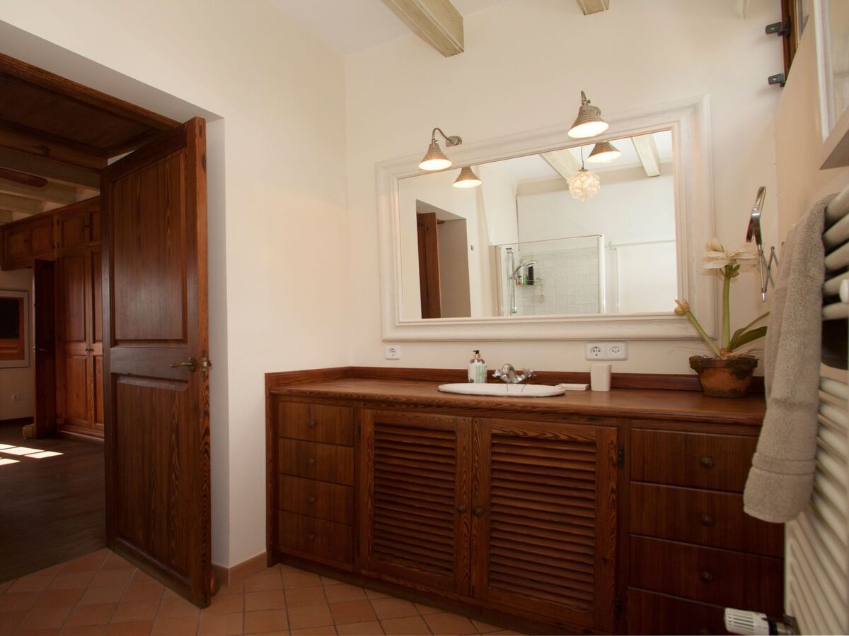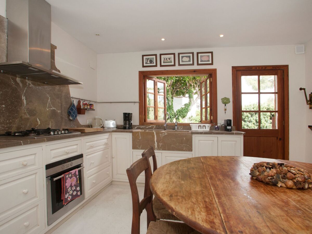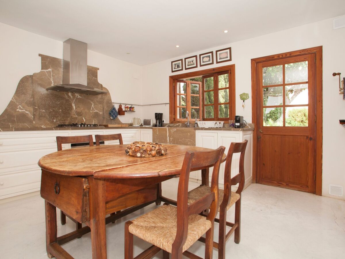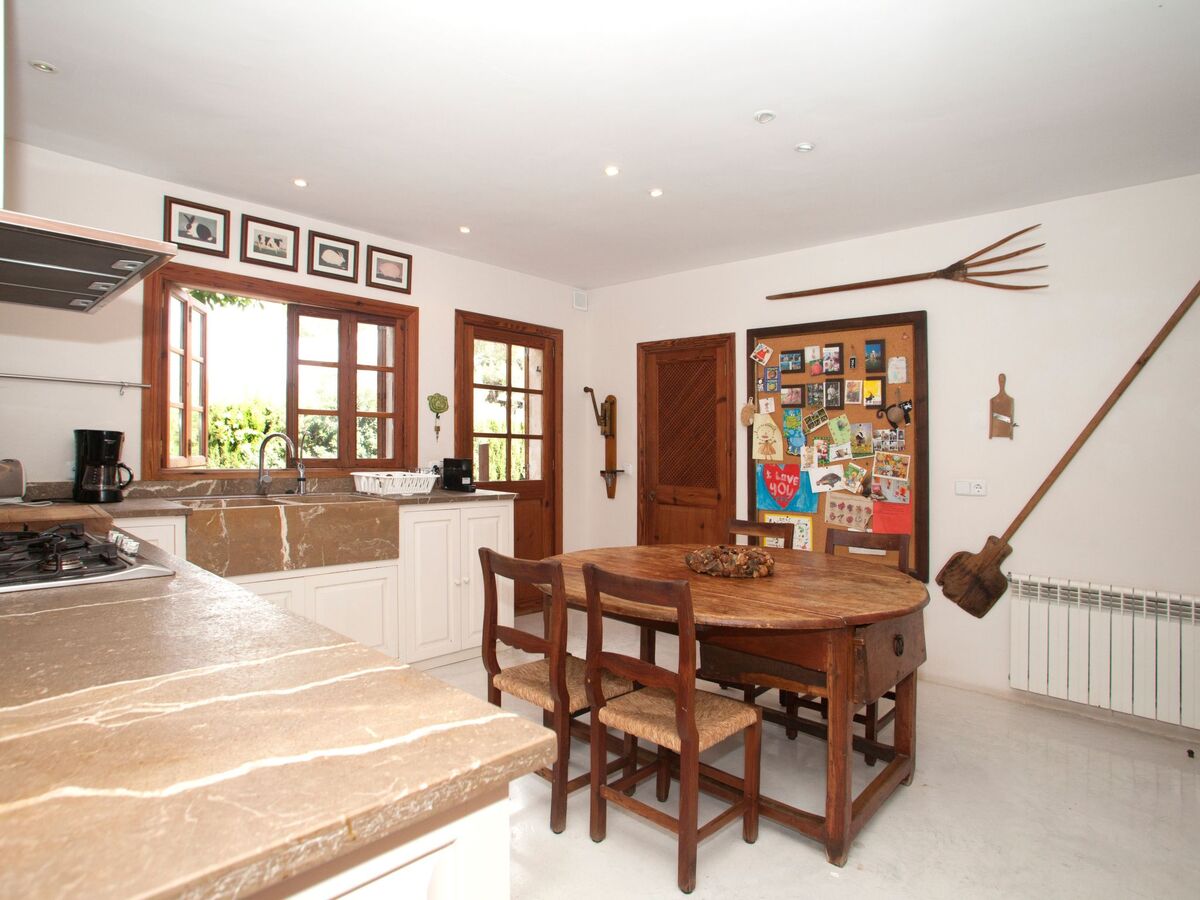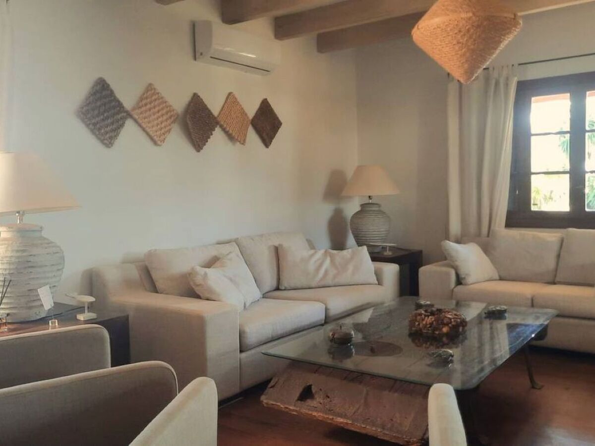 The interior of the villa exudes Mallorquin charm, elegantly fused with rustic decorations that create a warm and inviting atmosphere.