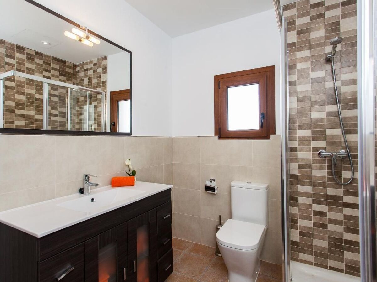 Two bedrooms, a kitchen, a bathroom and a terrace can be reached via an external staircase, while a further bathroom is located outside and is therefore easily accessible from the pool via the outdoor shower.