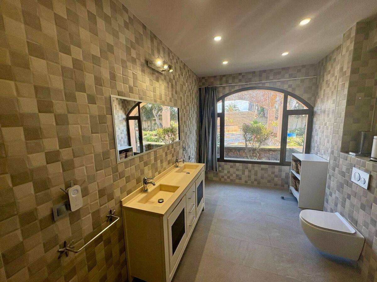 À l'extérieur, la villa se déploie dans toute sa splendeur avec un magnifique jardin méditerranéen qui comprend des plantes et des arbres indigènes, ainsi que des prairies de fleurs sauvages au printemps.