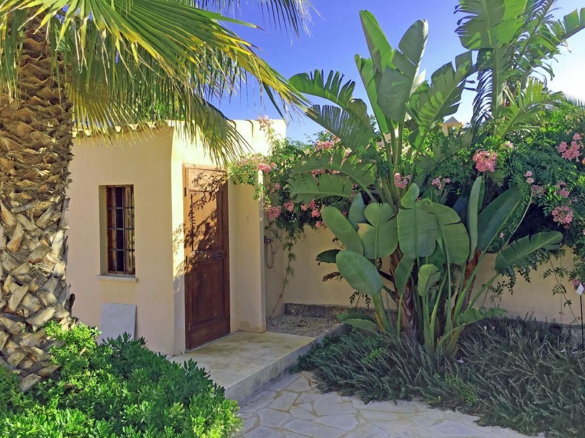Outside, a private Mediterranean garden with palm trees, cypresses and citrus trees awaits you.