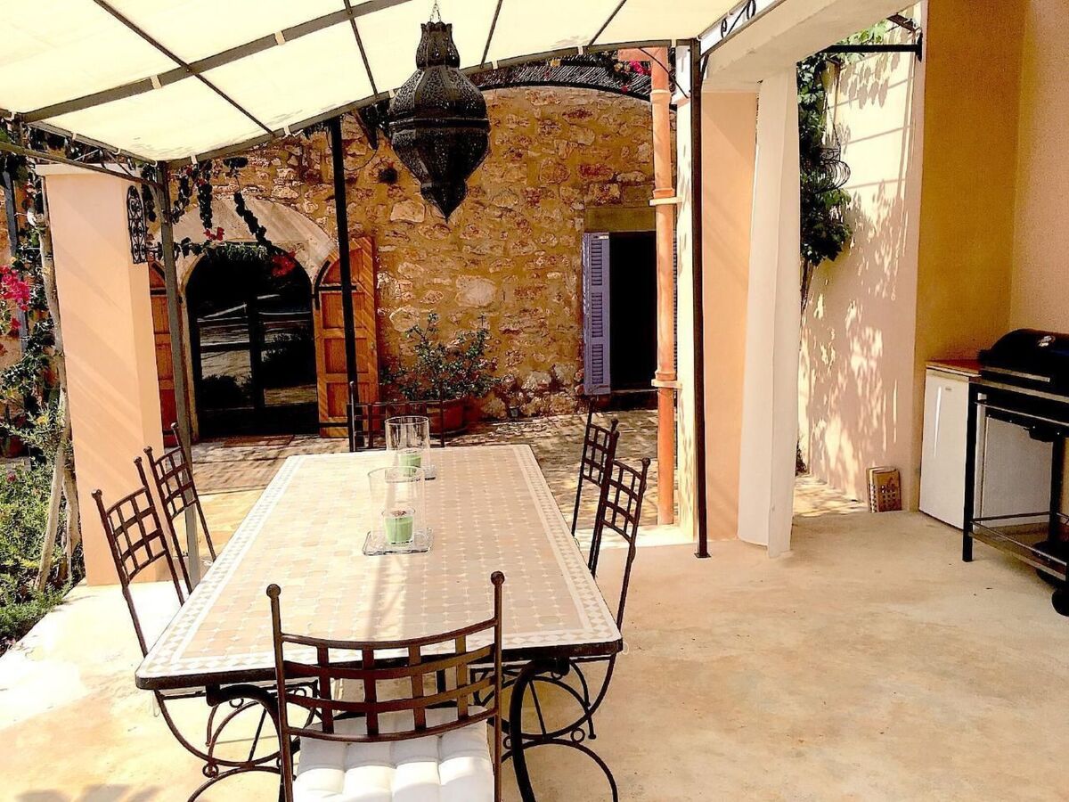An outdoor kitchen with barbecue, hot water sink, gas cooker, fridge and large dining table in the patio complete the amenities of the house.