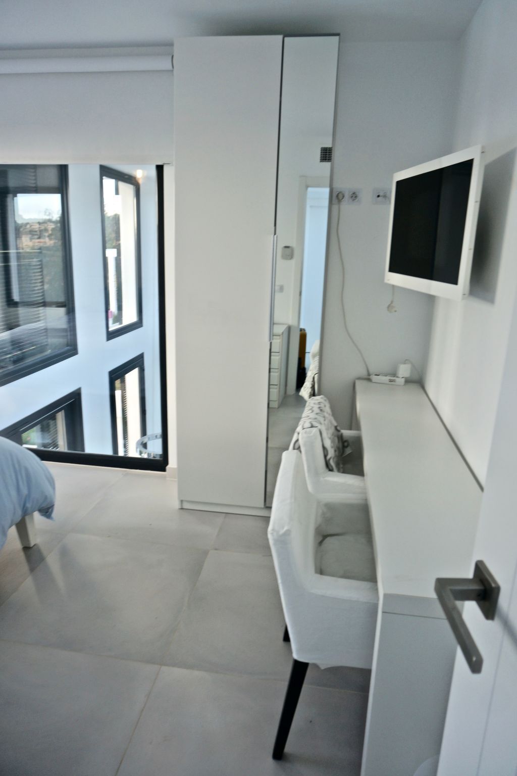 Sliding glass doors and Persian aluminium blinds are a matter of course.