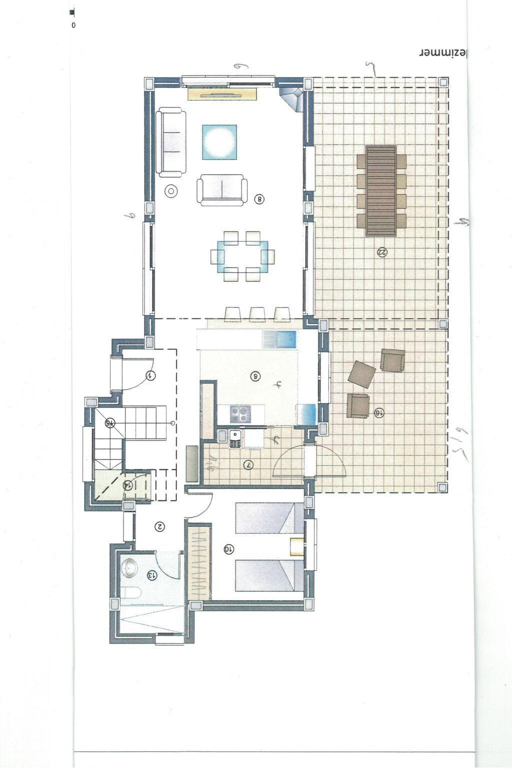 There is an additional seating area on the east side, which can be used as a breakfast area, for example.