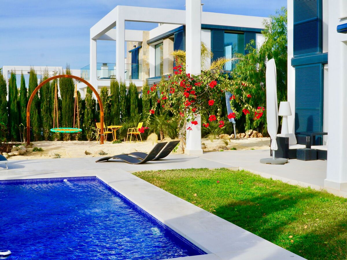 The quiet access road is for residents only.dreamlike newly built villa in Bauhaus style with private pool and communal pool, close to the beach, relax and unwind in the exclusive garden area and let eventful days come to a cosy end at sunset with the unobstructed view of the nature reserve