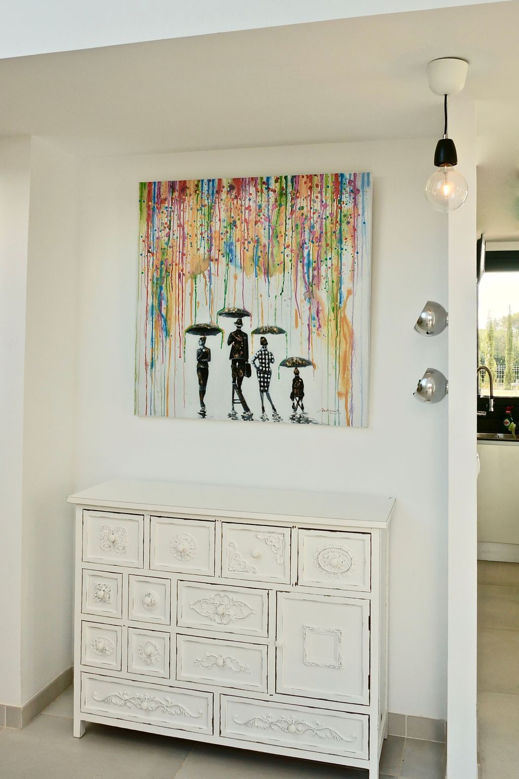 From the adjoining utility room with washing machine and tumble dryer, you can access the terrace through a glass door.