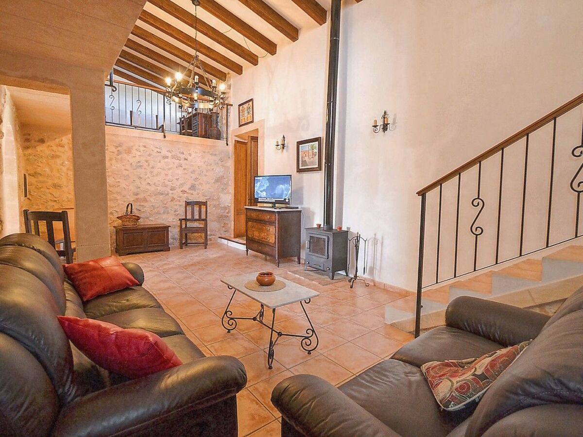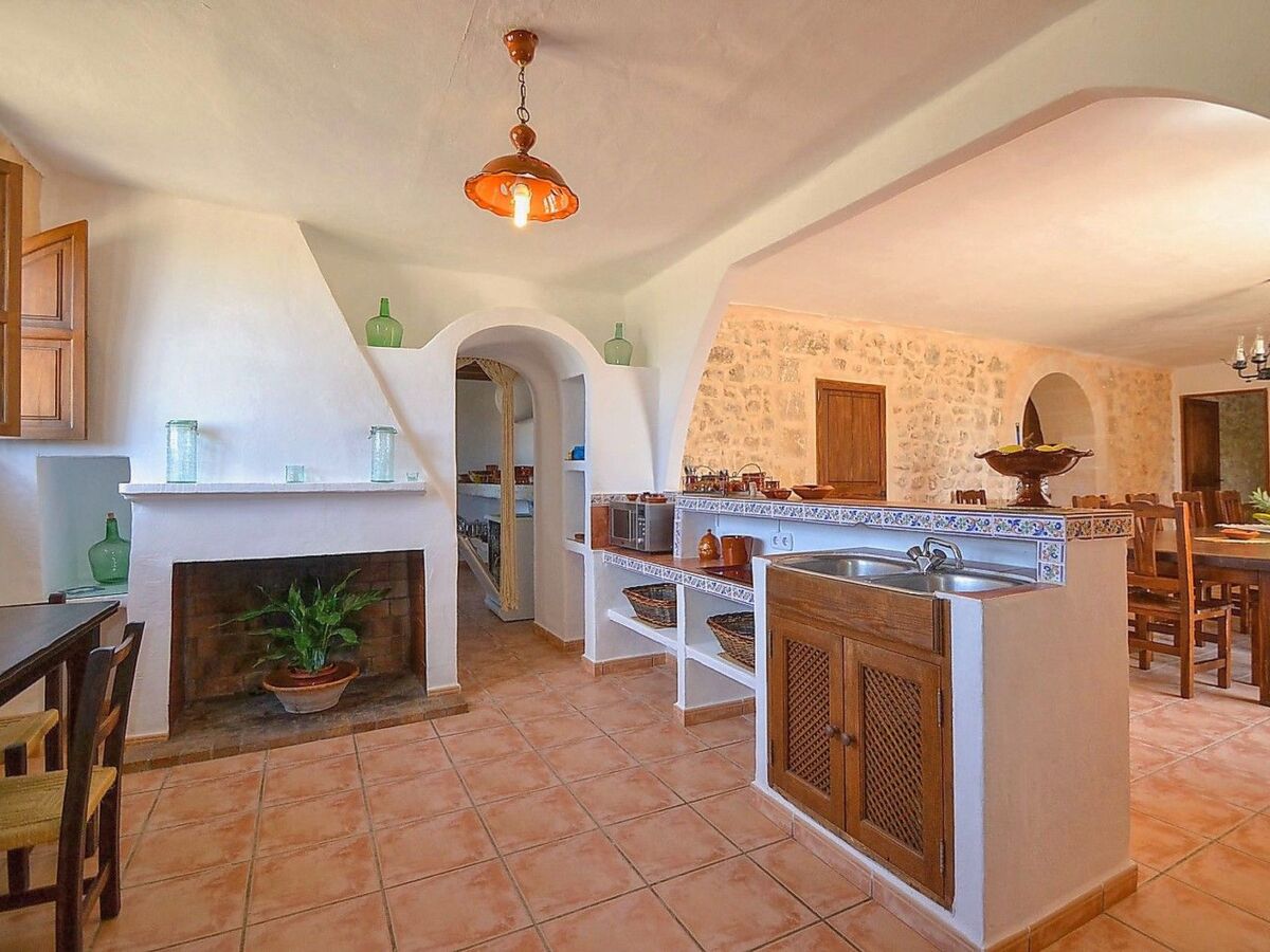 Il y a de grands espaces communs à l'intérieur de la maison et tous les intérieurs sont superbement décorés avec un mobilier de style rustique majorquin, des murs en pierre et des poutres apparentes, préservant ainsi le style rural traditionnel des maisons de l'île.