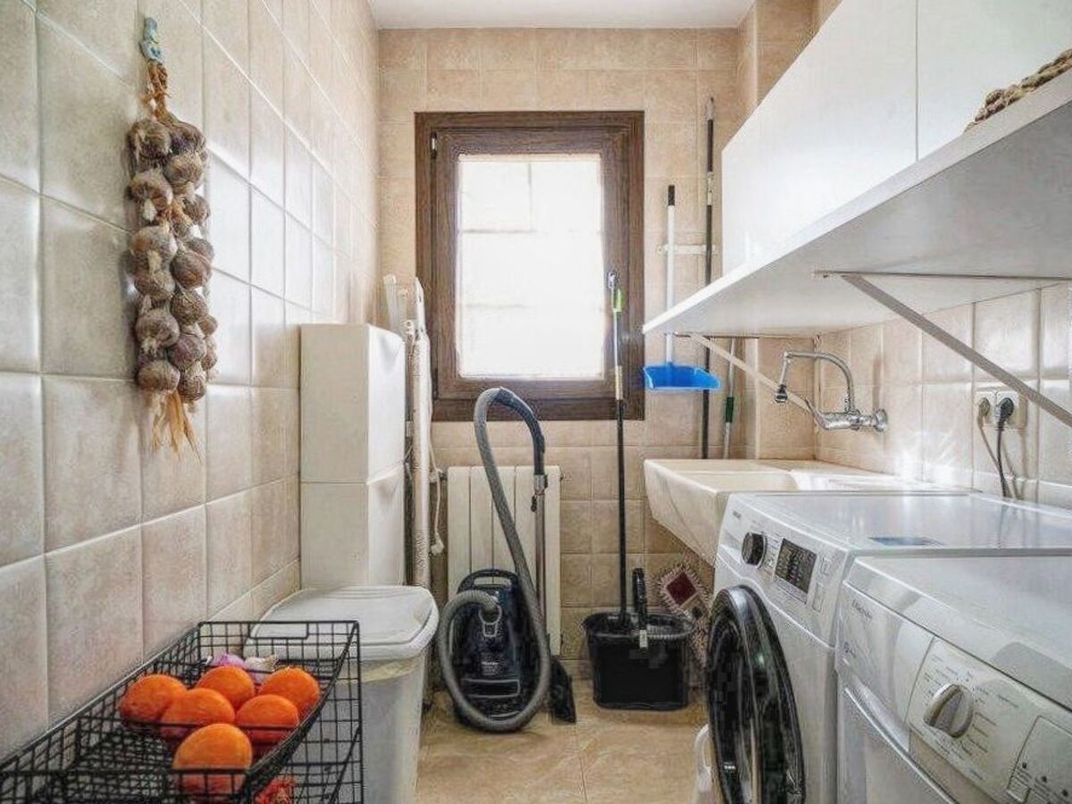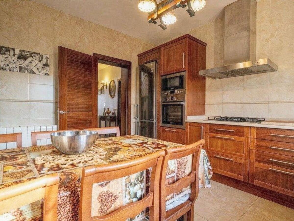 En el nivel inferior se encuentran también una sala de estar con chimenea y acceso a la terraza y una cocina totalmente equipada con lavavajillas, vitrocerámica, horno, tostador, microondas y cafetera.