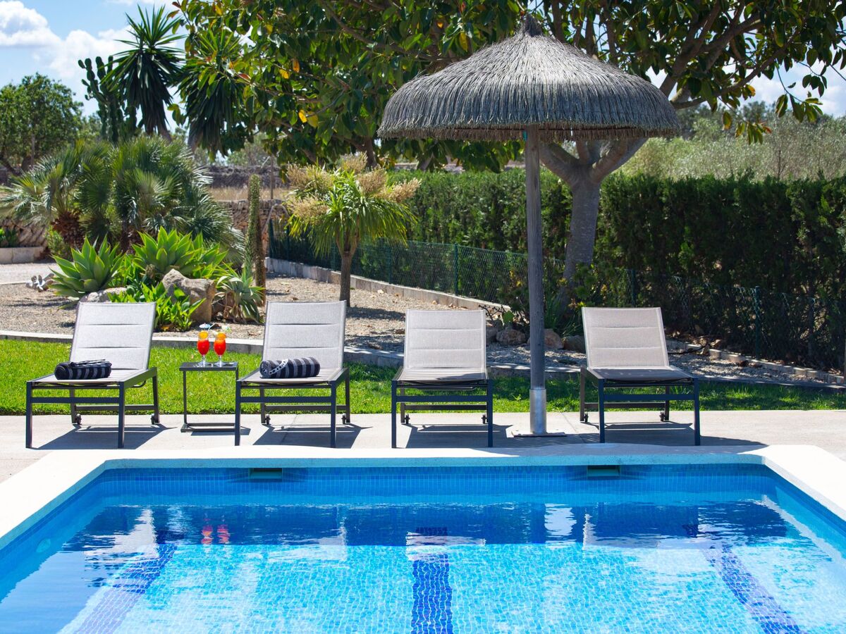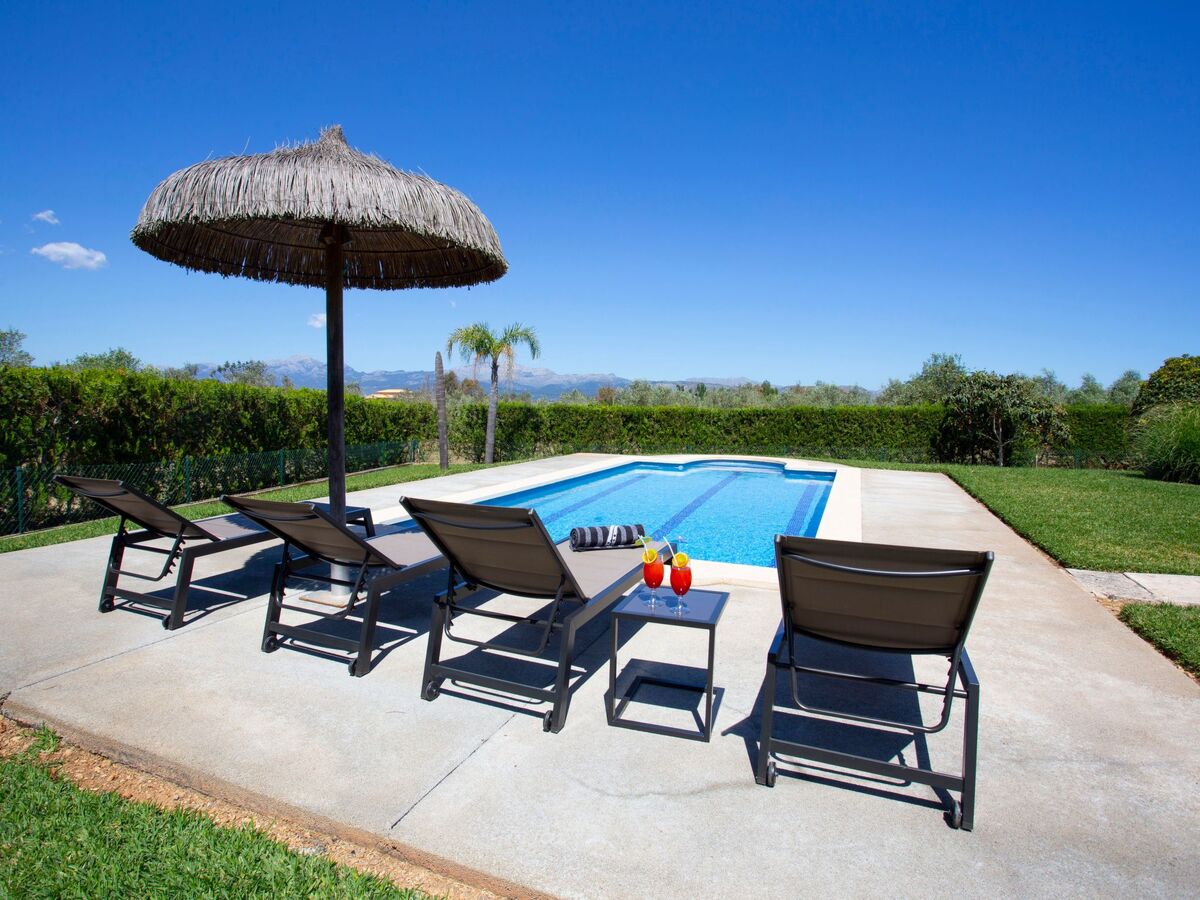 Relax on the terrace with a view of the Tramuntana mountains, enjoy the pool in the centre of the lawn and the tranquillity of the private garden.