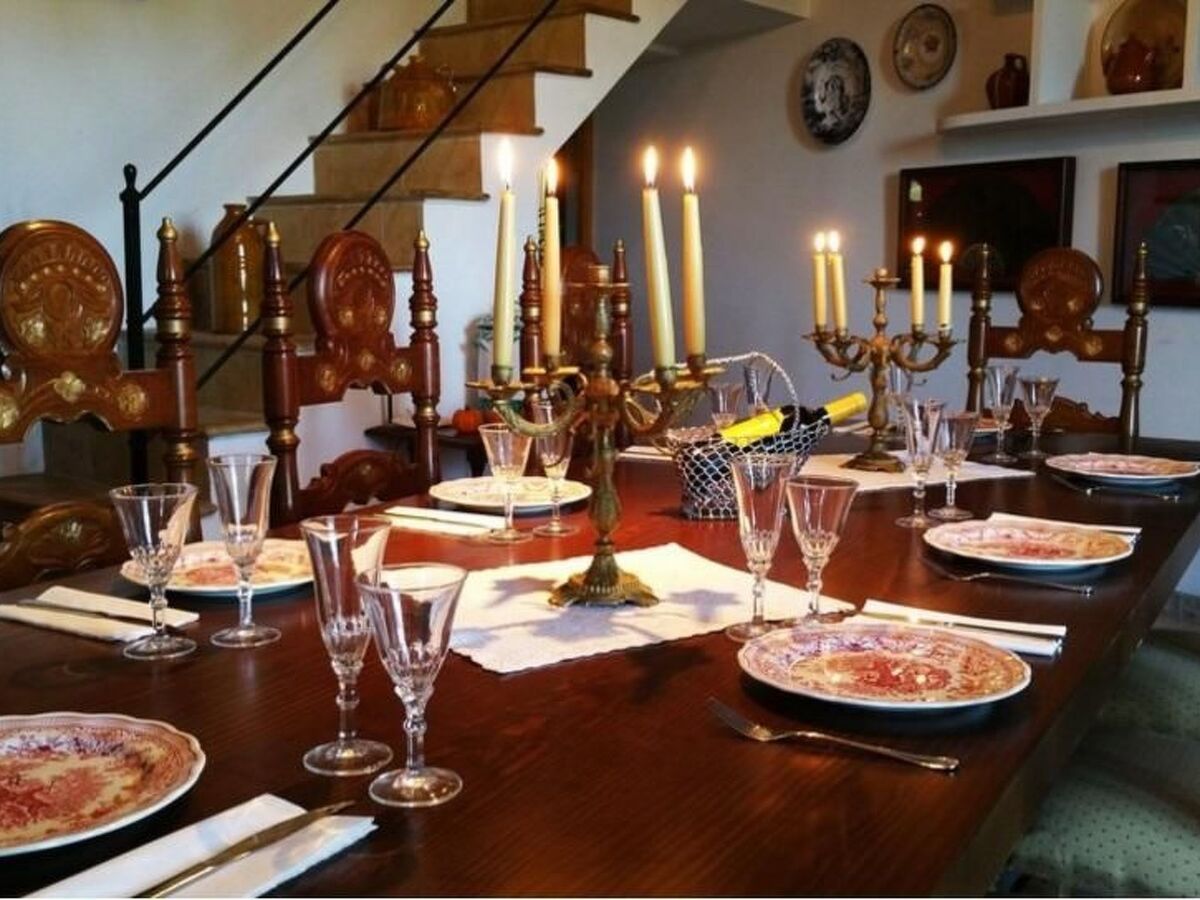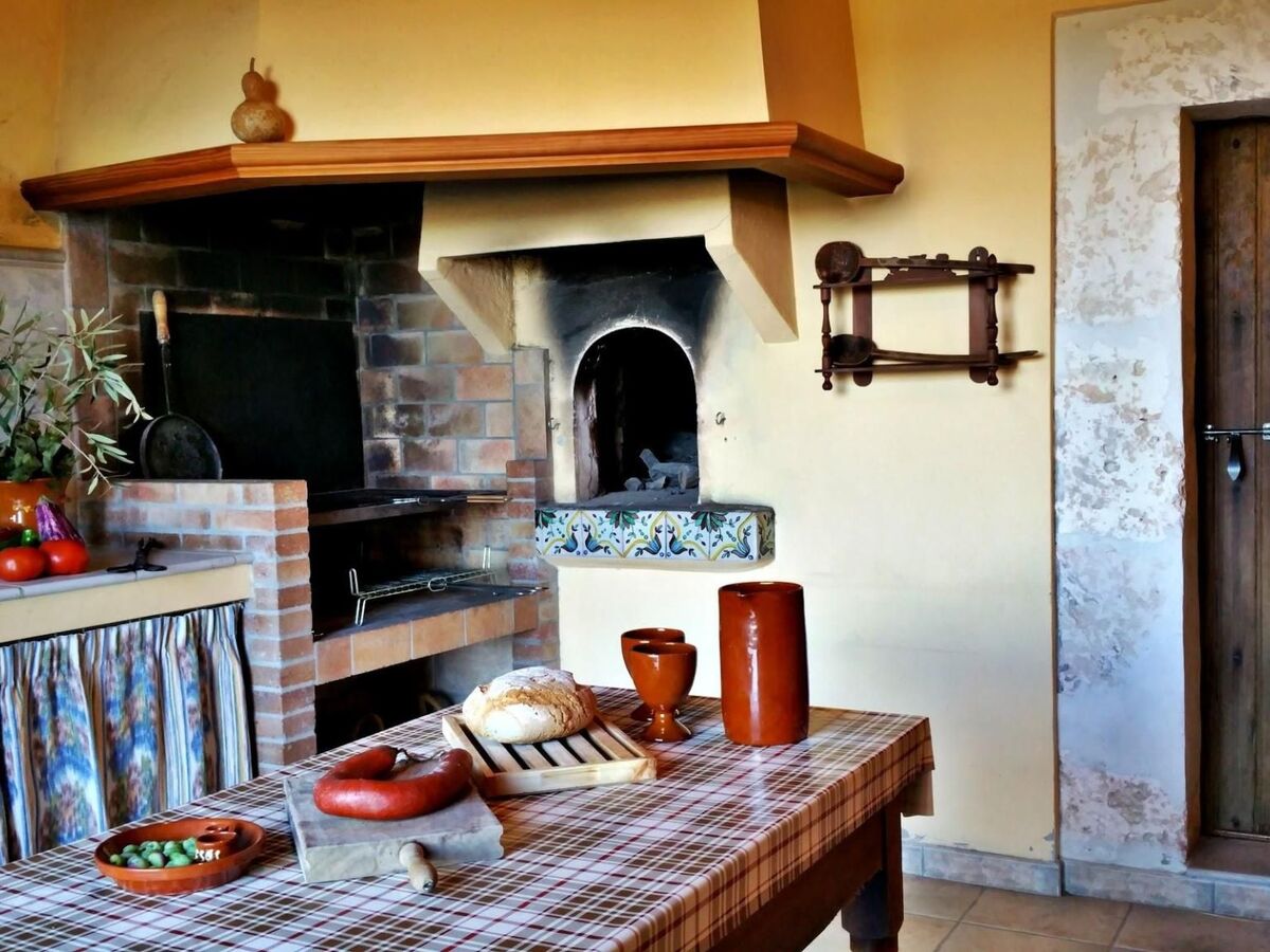 The large holiday home has an entrance hall in Majorcan style and a living room with fireplace, a large dining room and a spacious living room with parquet floor and fireplace, a reading room, a fully equipped kitchen, a kitchenette integrated in the living room and an old Majorcan style oven.