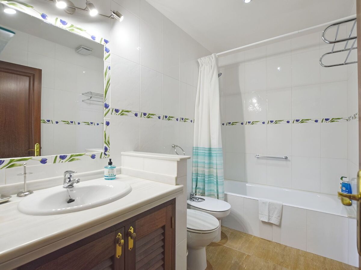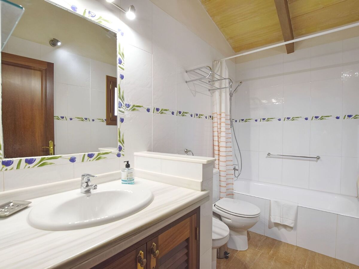 In total there are six bedrooms (2x double bed, 4x single beds) and three bathrooms with shower in bathtub, a fourth bathroom with shower is outside near the pool area.