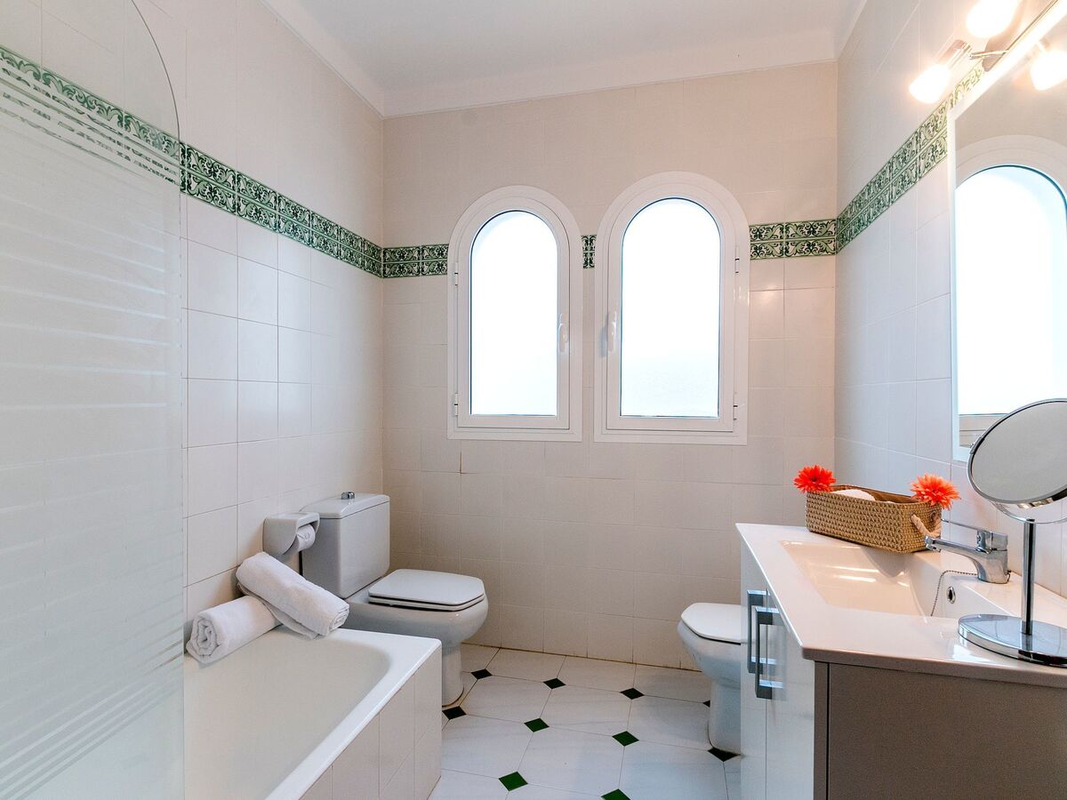 There are three bathrooms that give service to the whole house, one on the ground floor with shower and two on the 1st floor (one of them en suite with bathtub) and another one with shower.
