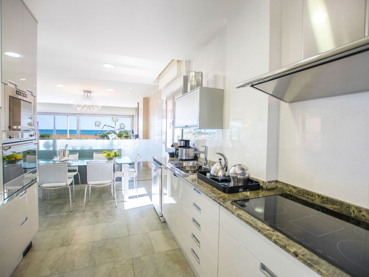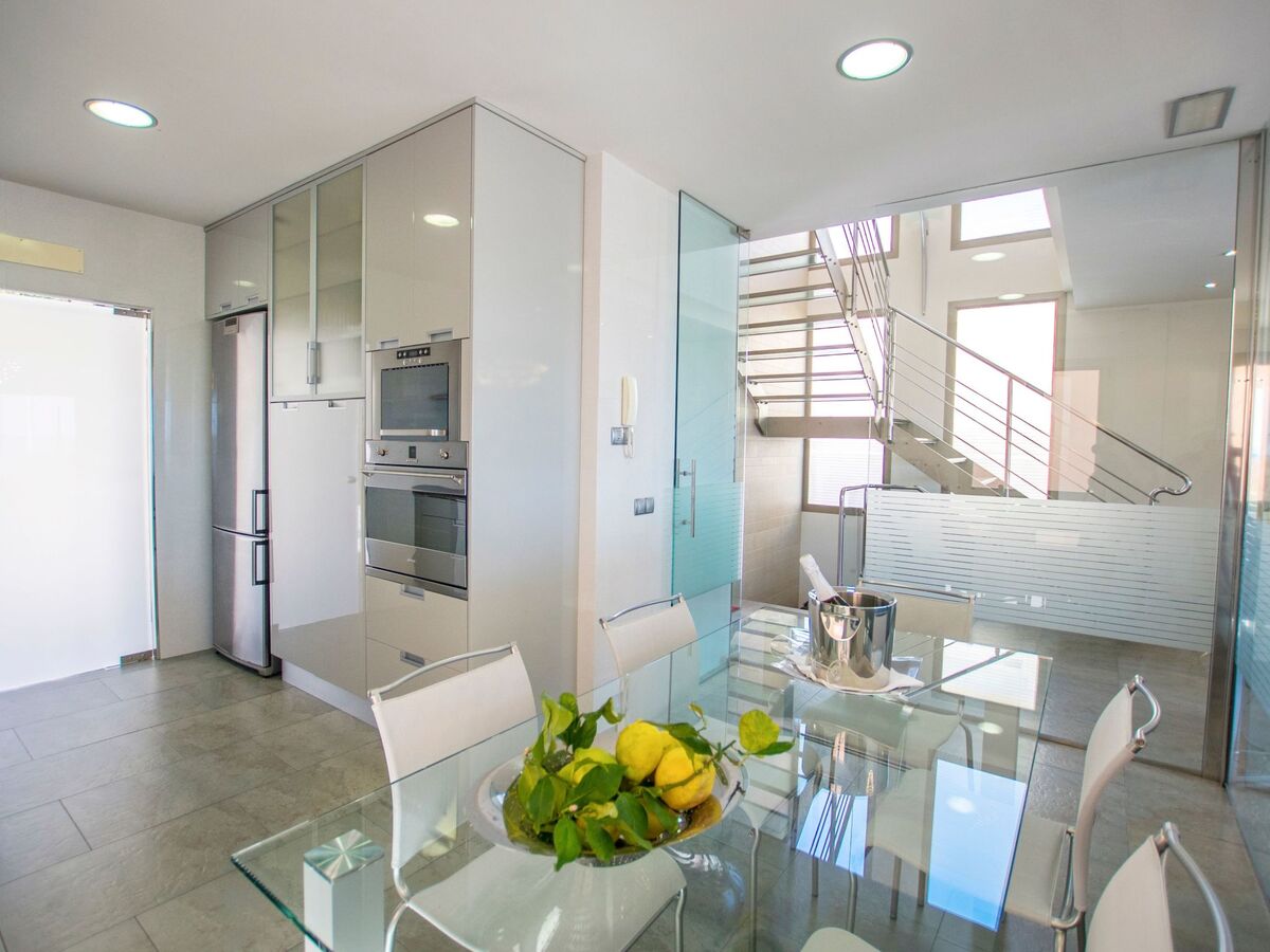 The main floor features a large terrace, a spacious living-dining room bathed in natural light through the large windows and a designer kitchen-dining room equipped with state-of-the-art appliances, from where the view of the sea will not leave you indifferent.