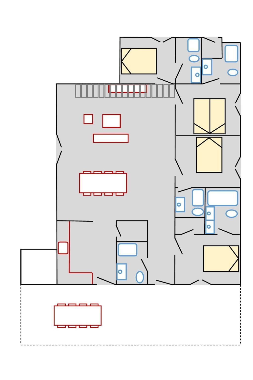 With a total of 4 bedrooms and 5 bathrooms (each bedroom has its own bathroom), the space is perfectly distributed to accommodate all guests in comfort.