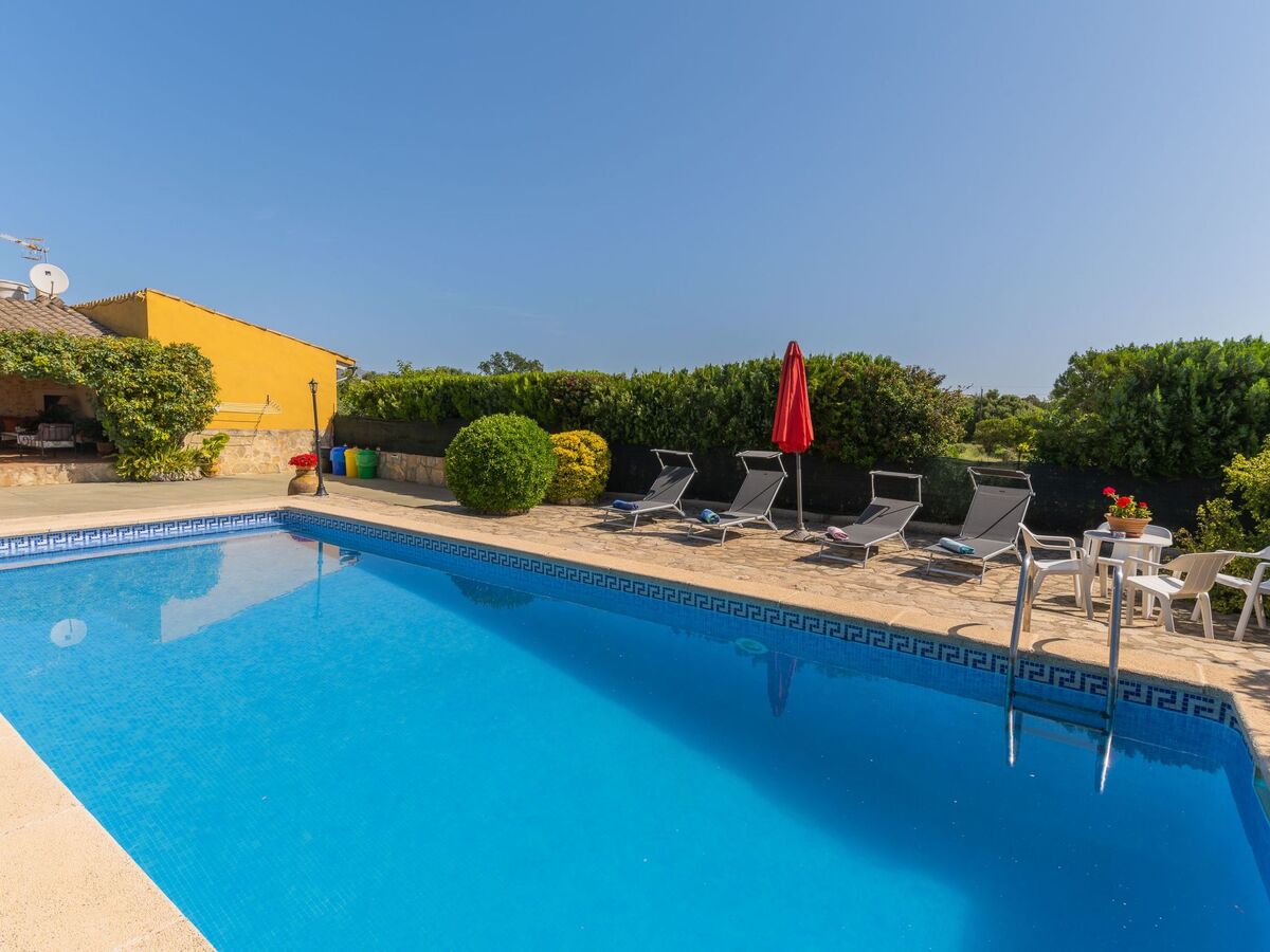 Outside you can see the spectacular swimming pool with dimensions of 10 x 4m, with a maximum depth of 1.80 m, next to it a solarim with 2 parasols with their corresponding sun loungers, right next to it is an impeccable covered terrace with a sofa and its armchairs, and a table with its games for children as well as adults.