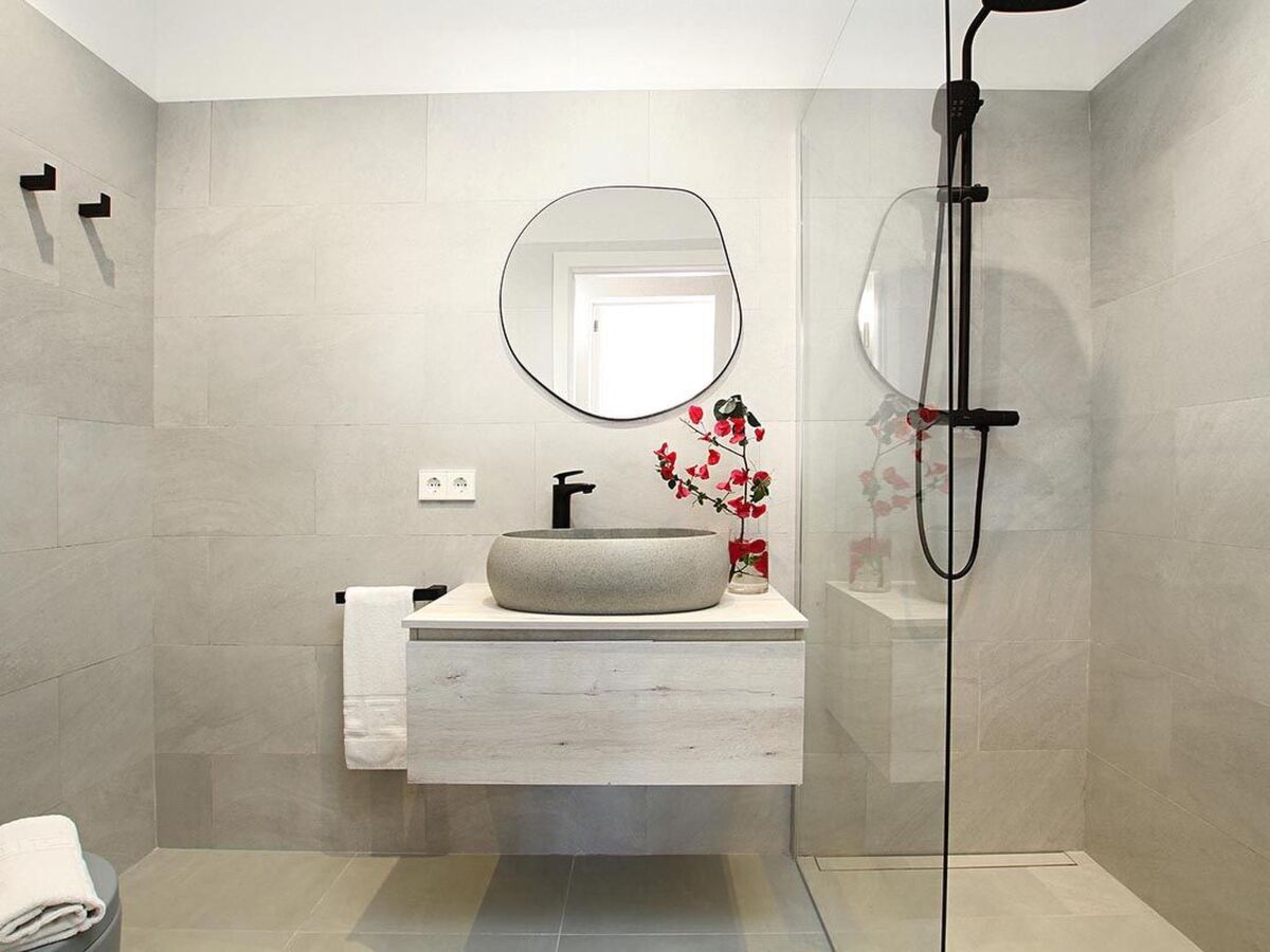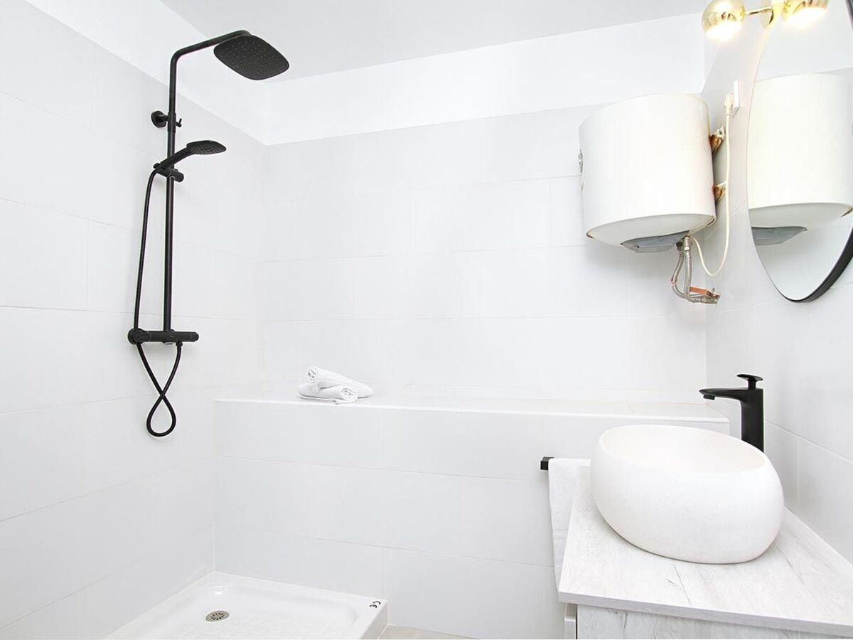 Also from the hallway and through an interior stone archway we can access a bedroom with a double bed and a bathroom with shower.