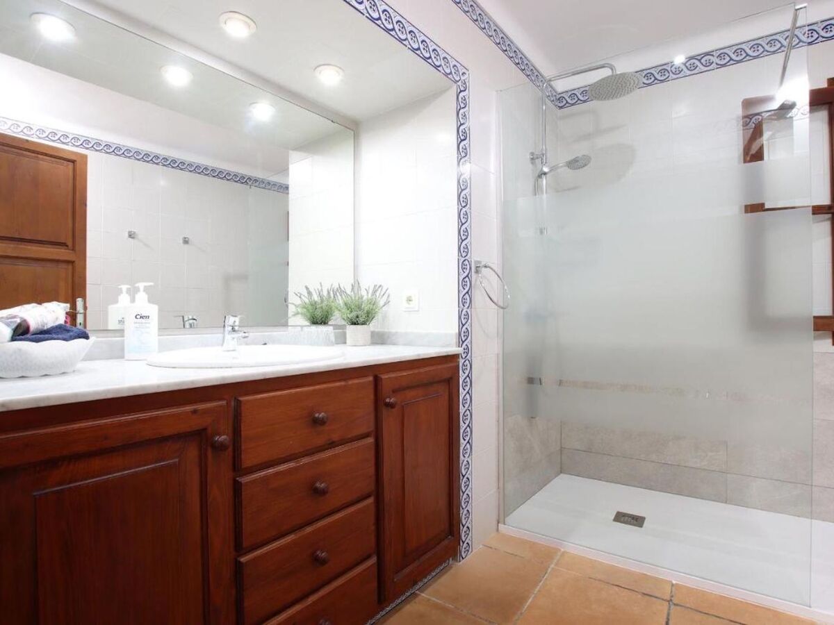 The decoration is totally traditional with wooden beams, ceramic and stone floors, white walls etc.