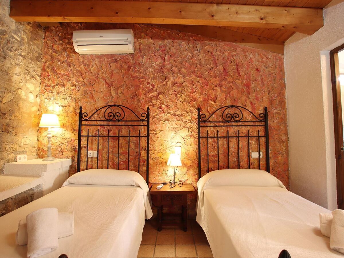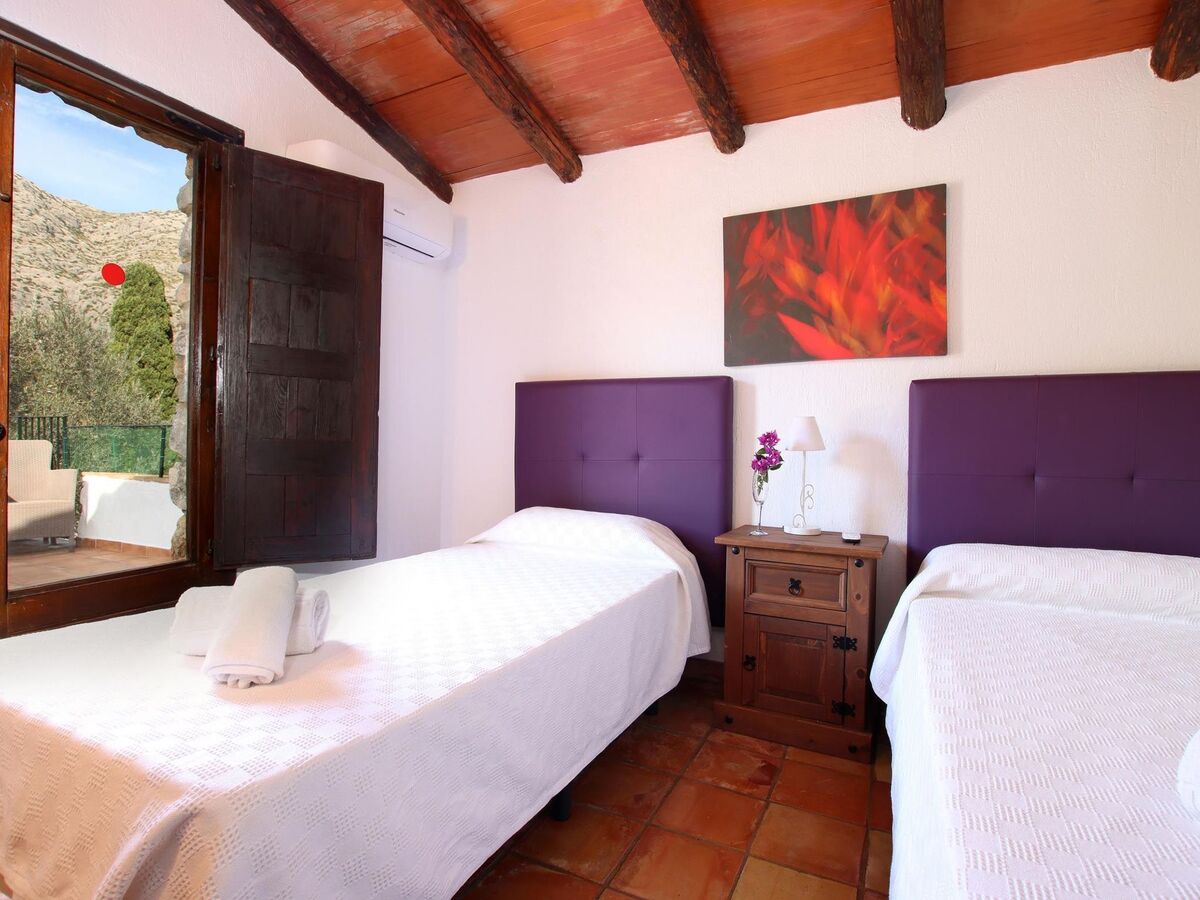 These 2 upstairs bedrooms share a large terrace overlooking the private pool, gardens and mountains.