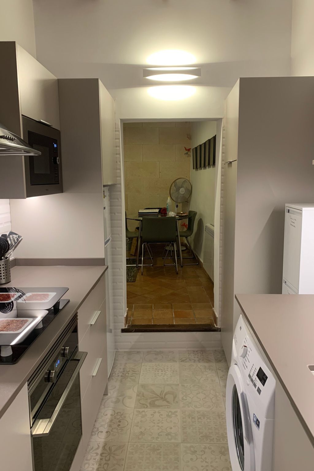 The kitchen is fully equipped and includes a fridge, freezer, cooker, microwave and coffee maker.