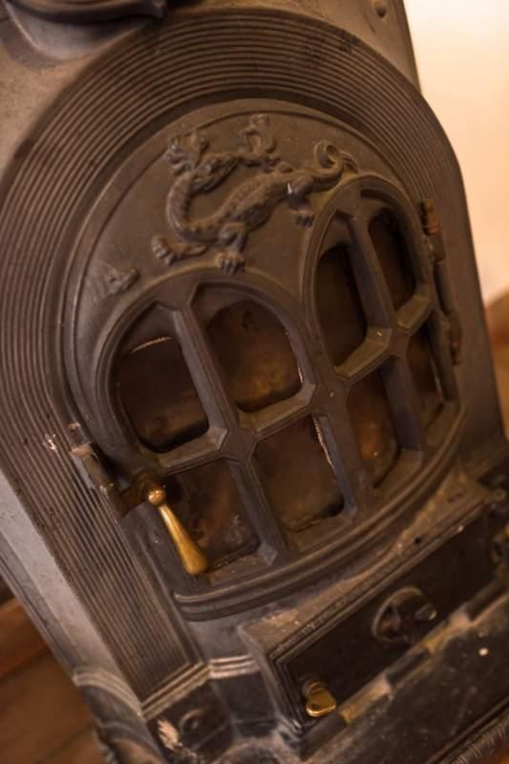 The comfortably furnished living room has a fireplace and a sofa bed for two people, as well as a dining table where you can enjoy your meals.